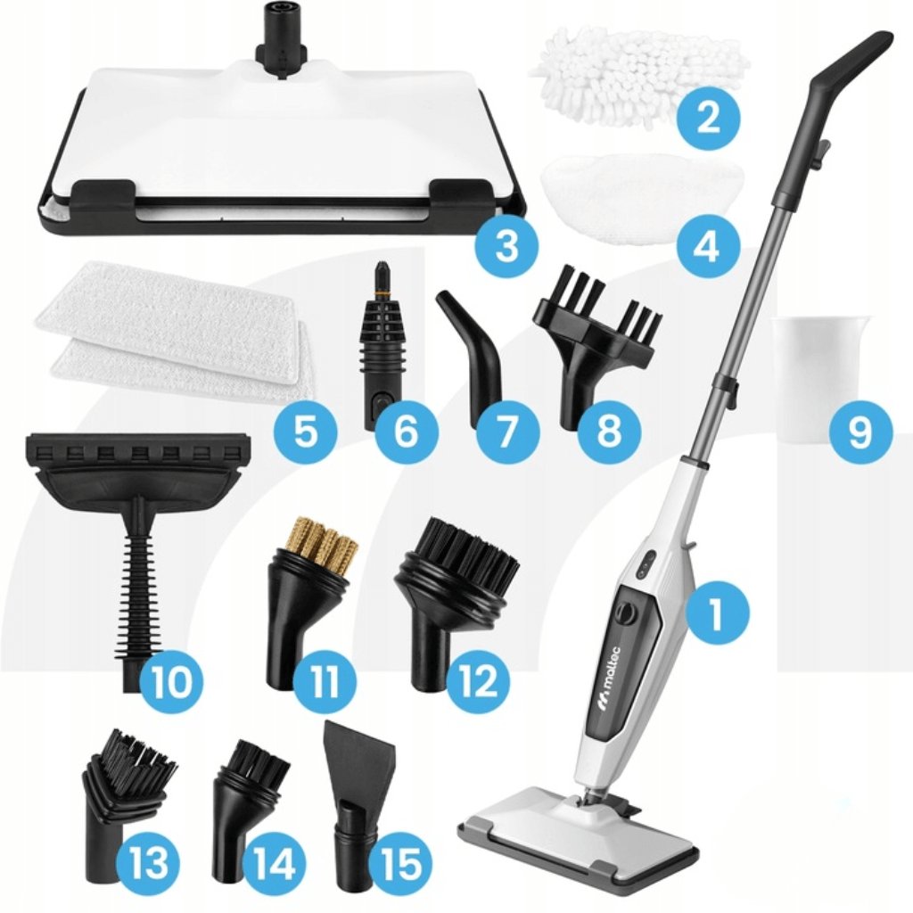 Clean-Steam Multifunkční parní čistič 12v1 s bohatou sadou nástavců a regulací páry