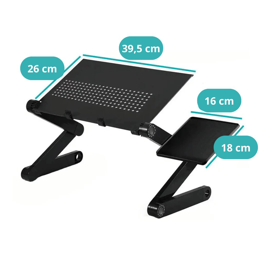 Několik 360° uzamykatelných kloubů umožňuje nastavení optimální výšky pro maximálně pohodlnou práci na notebooku.