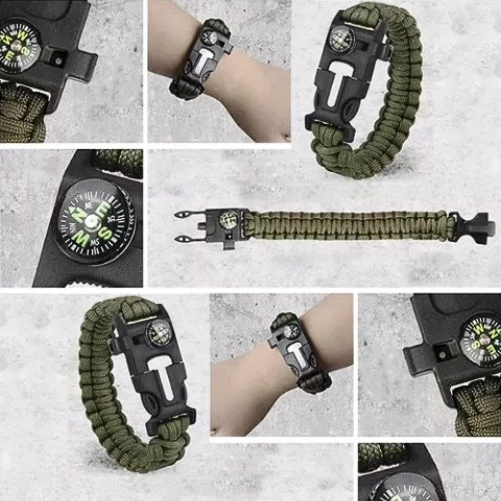 - paracord band - cca 350 cm paracord s kompasem, píšťalkou a zapalovačem