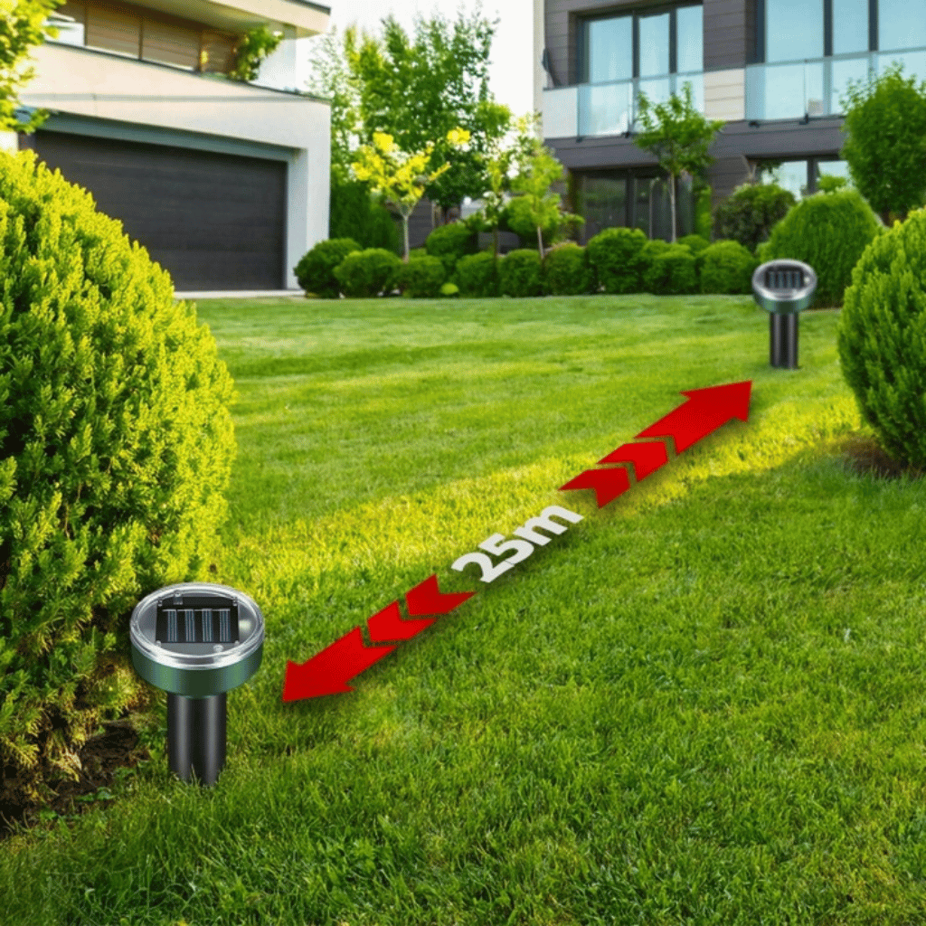 Pro maximální účinnost doporučujeme rozmístit zařízení přibližně 25–30 metrů od sebe, aby byl váš pozemek chráněn rovnoměrně a bez hluchých míst.