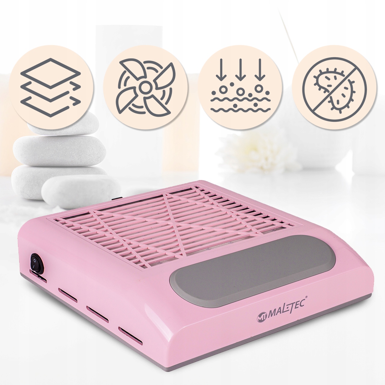 NailClean Pro 80W – Profesionální odsávačka prachu na manikúru s ergonomickou podložkou a kazetovým filtrem růžová