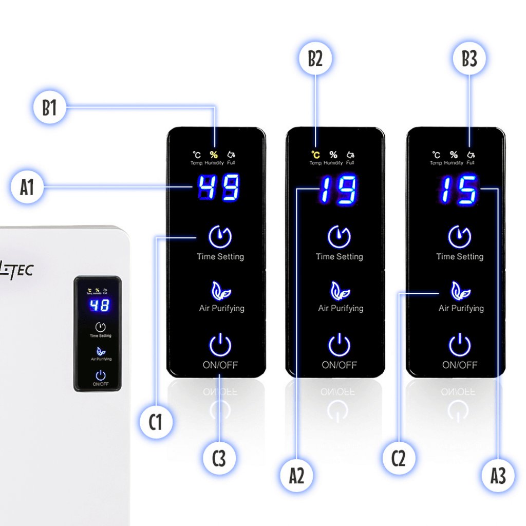 Odvlhčovač vhodným LED indikátorem sám signalizuje potřebu vyprázdnění nádrže a pozastaví práci, aby se zabránilo přetečení vody.