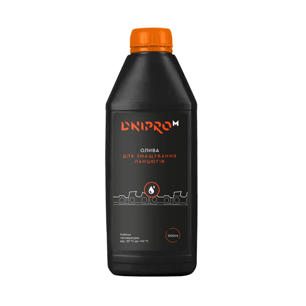 Řetězový olej Dnipro-M 1 l se používá k mazání řetězů, pneumatik a hnacích převodů benzínových a elektrických řetězových pil.