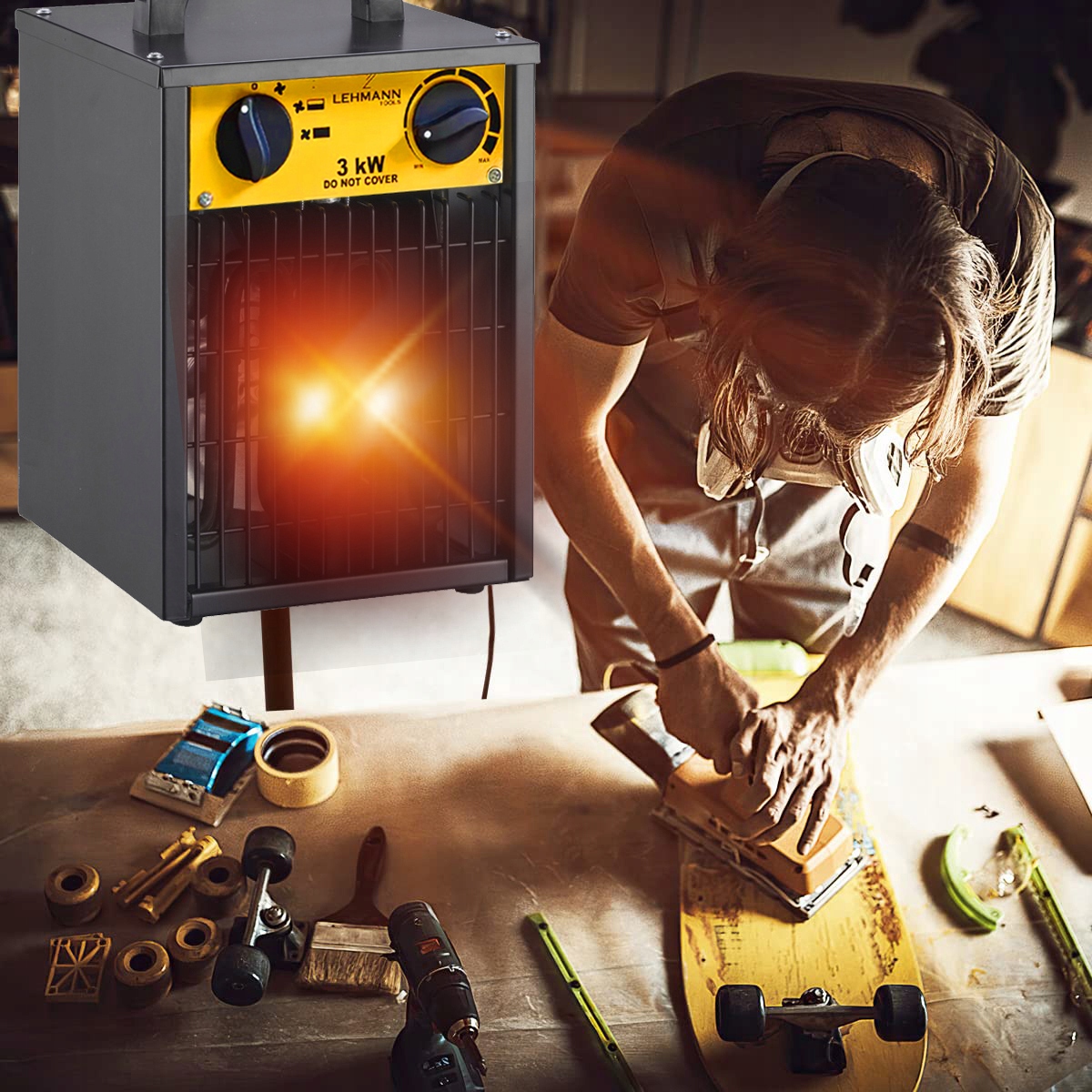 - Široké použití – ideální pro vytápění dílen, garáží, pracovišť a při rekonstrukcích