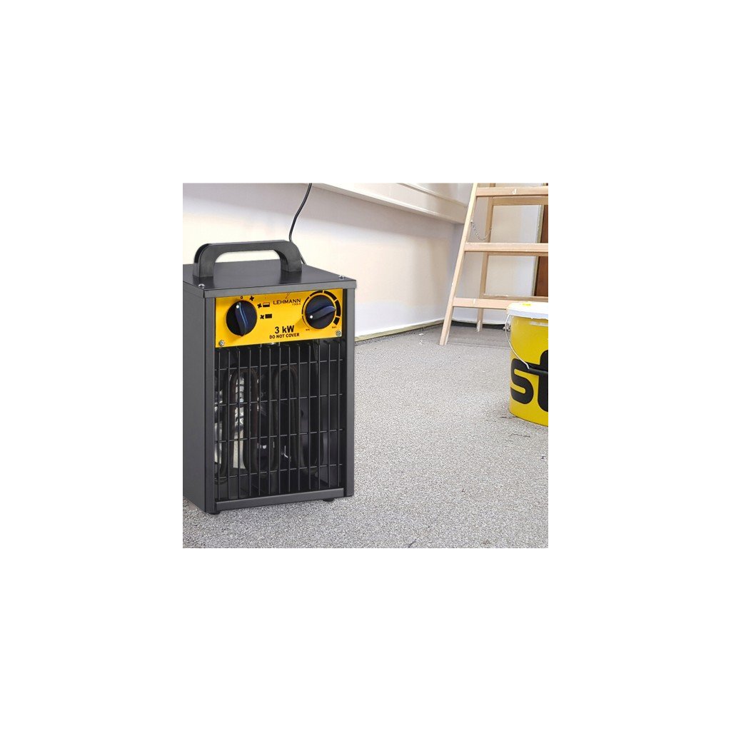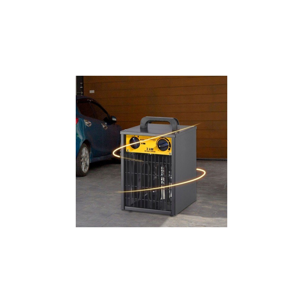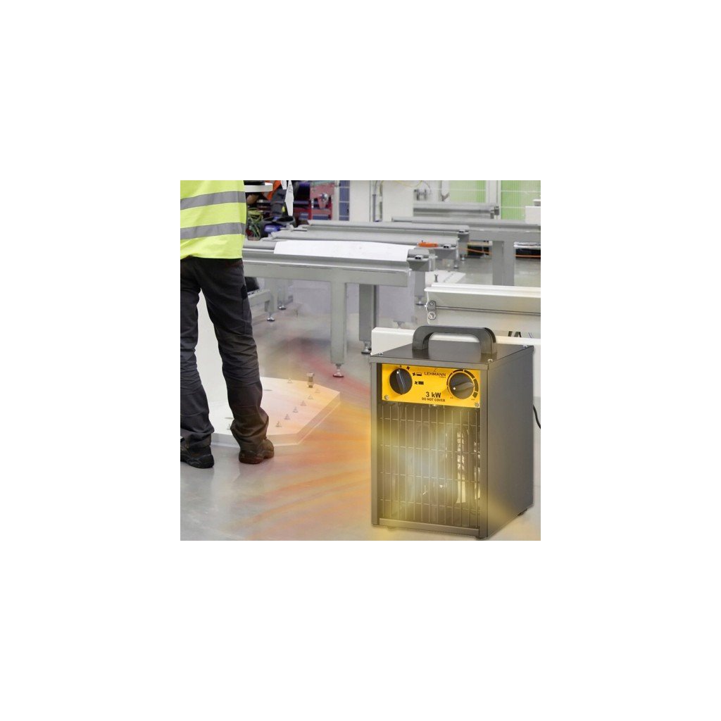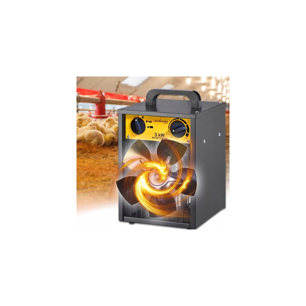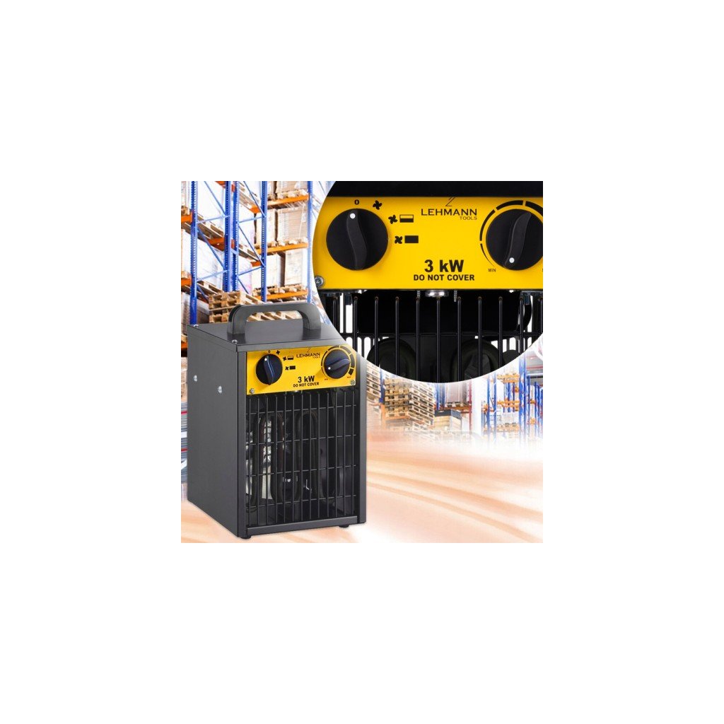 Industrial 3000 W – elektrický termoventilátor ocelovým krytem a vysokým výkonem, s funkcí ventilátoru bez ohřevu, tepelná ochrana