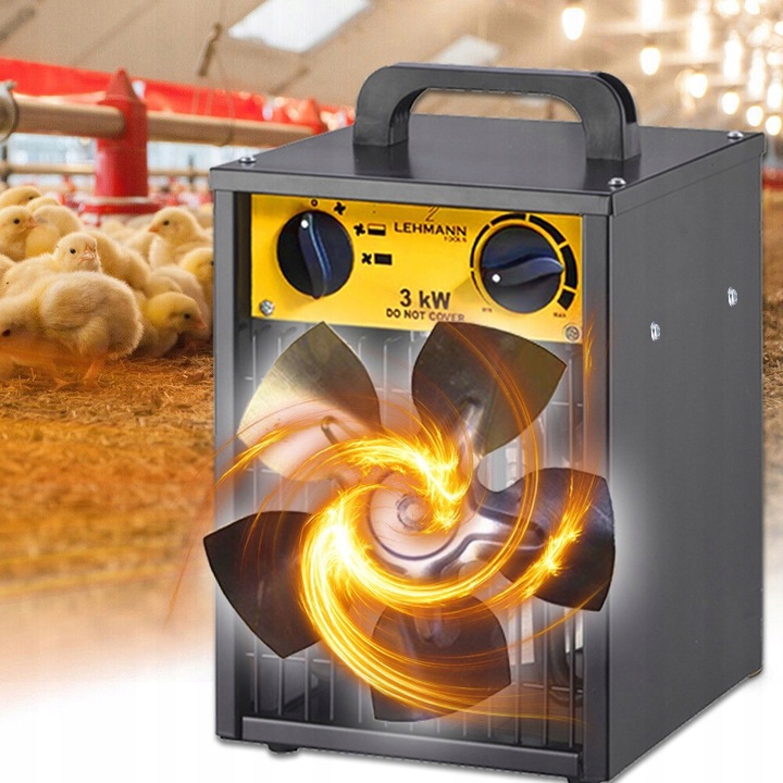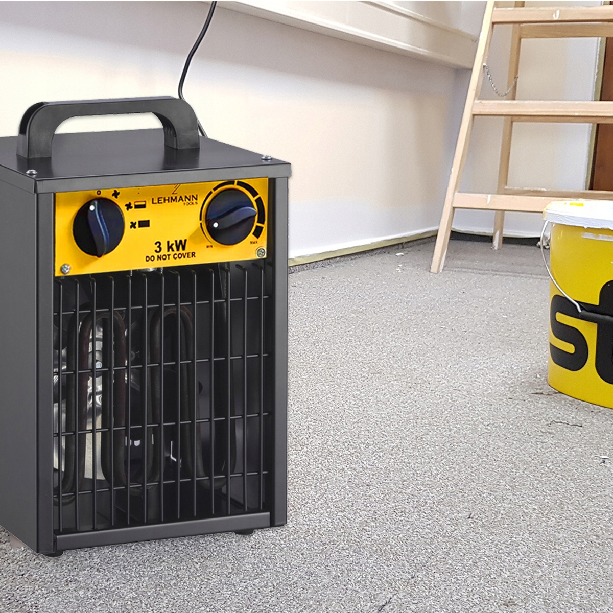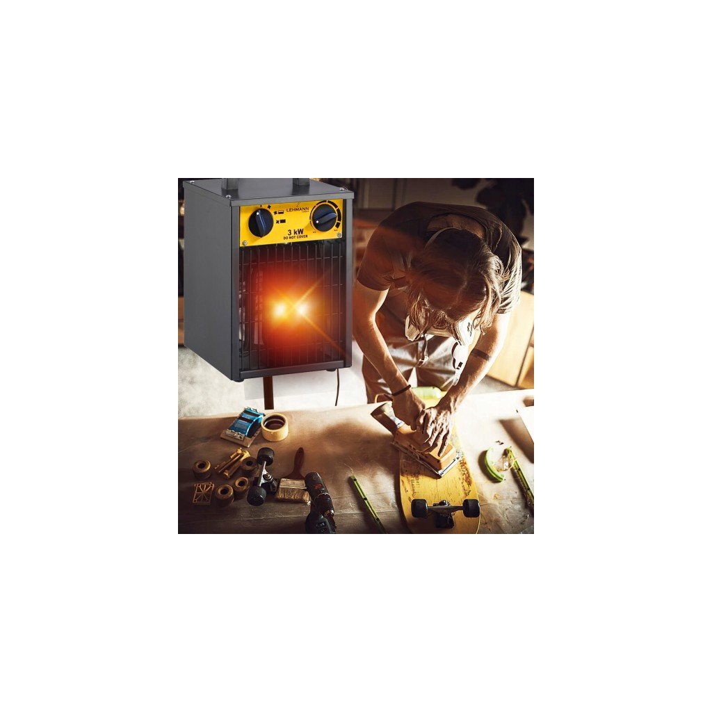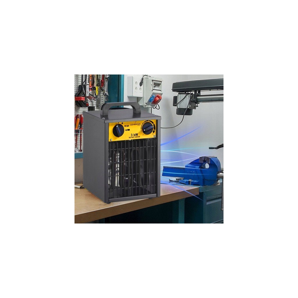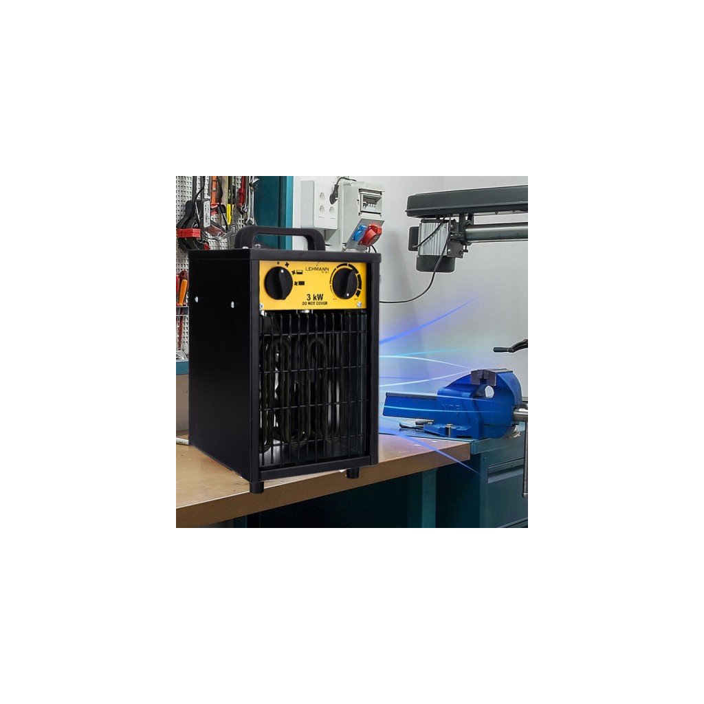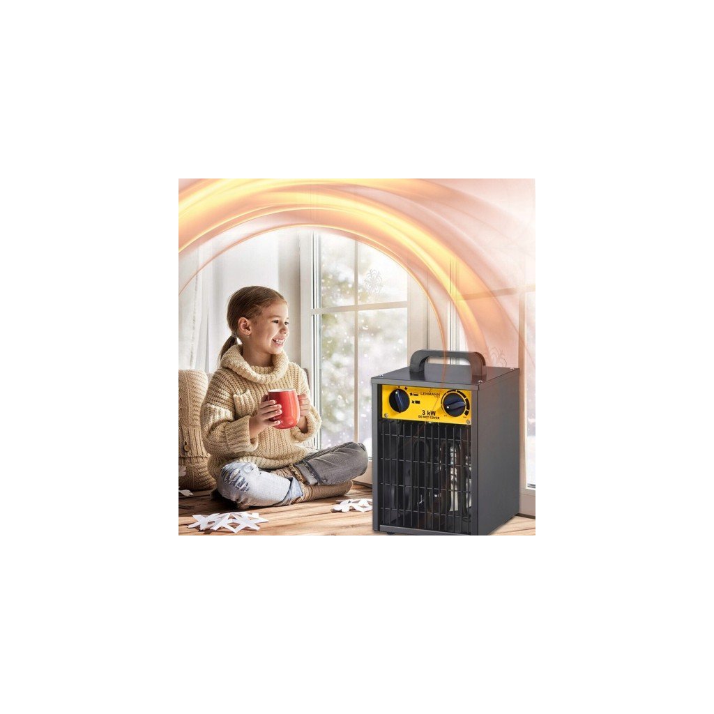 Industrial 3000 W – elektrický termoventilátor ocelovým krytem a vysokým výkonem, s funkcí ventilátoru bez ohřevu, tepelná ochrana
