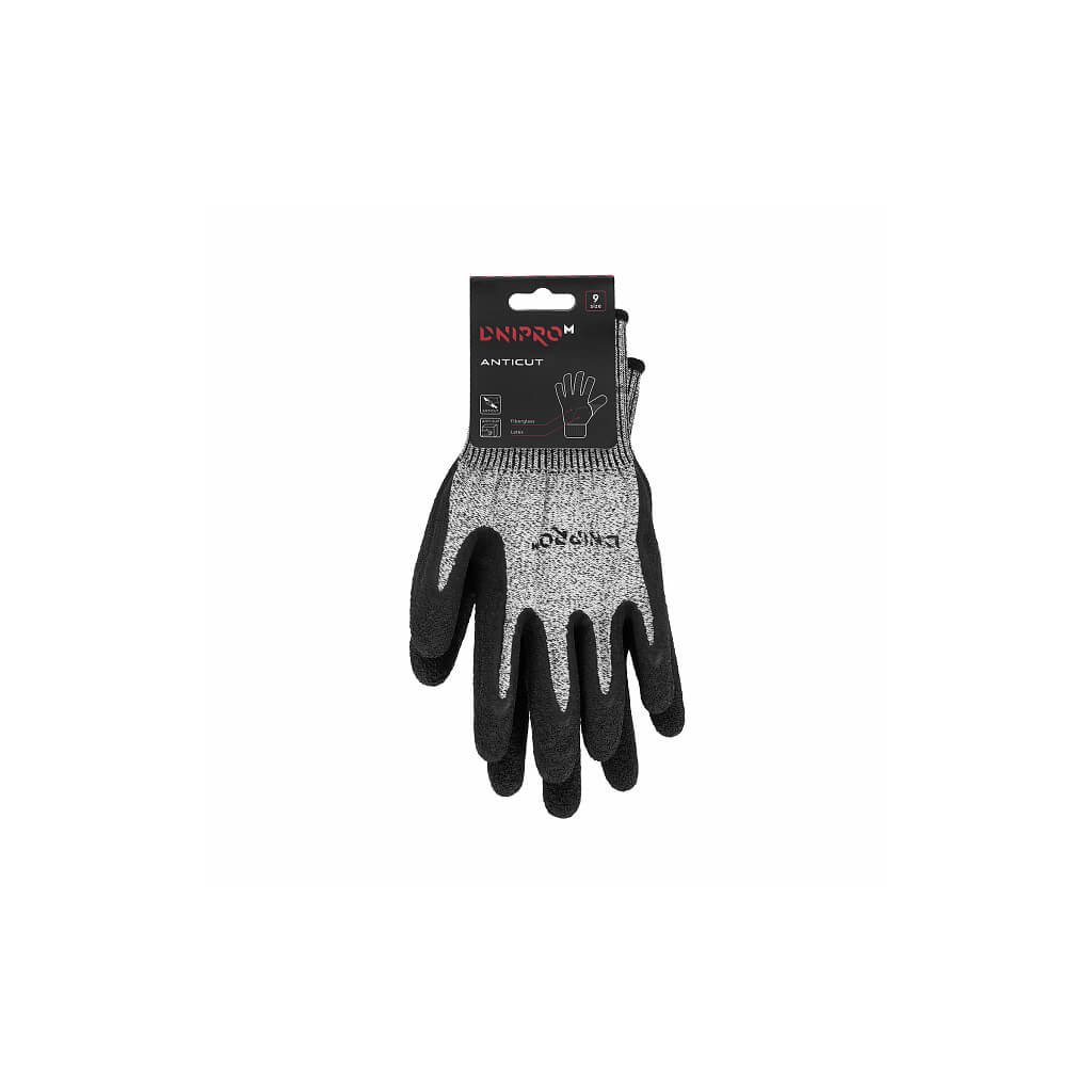 Rukavice jsou zařazeny do třídy ochrany 5, která zajišťuje vysoký stupeň odolnosti proti pořezání. Díky dvojité vrstvě extrudovaného latexu rukavice Dnipro-M AntiCut spolehlivě chrání dlaně a prsty na obou stranách před drobnými částečkami pracovních materiálů. Ochranný účinek je posílen použitím skelných vláken.