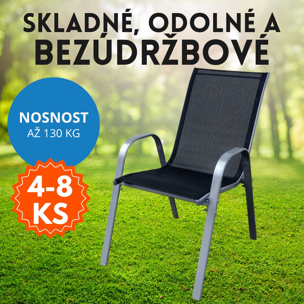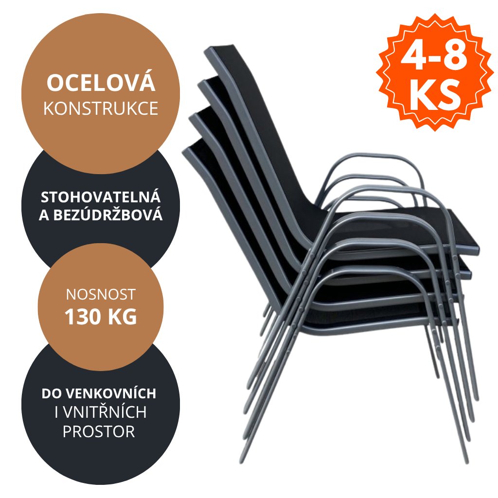 Sada 4-8× Zahradní kovová židle RAMADA stříbrná – praktická, pohodlná, stohovatelná