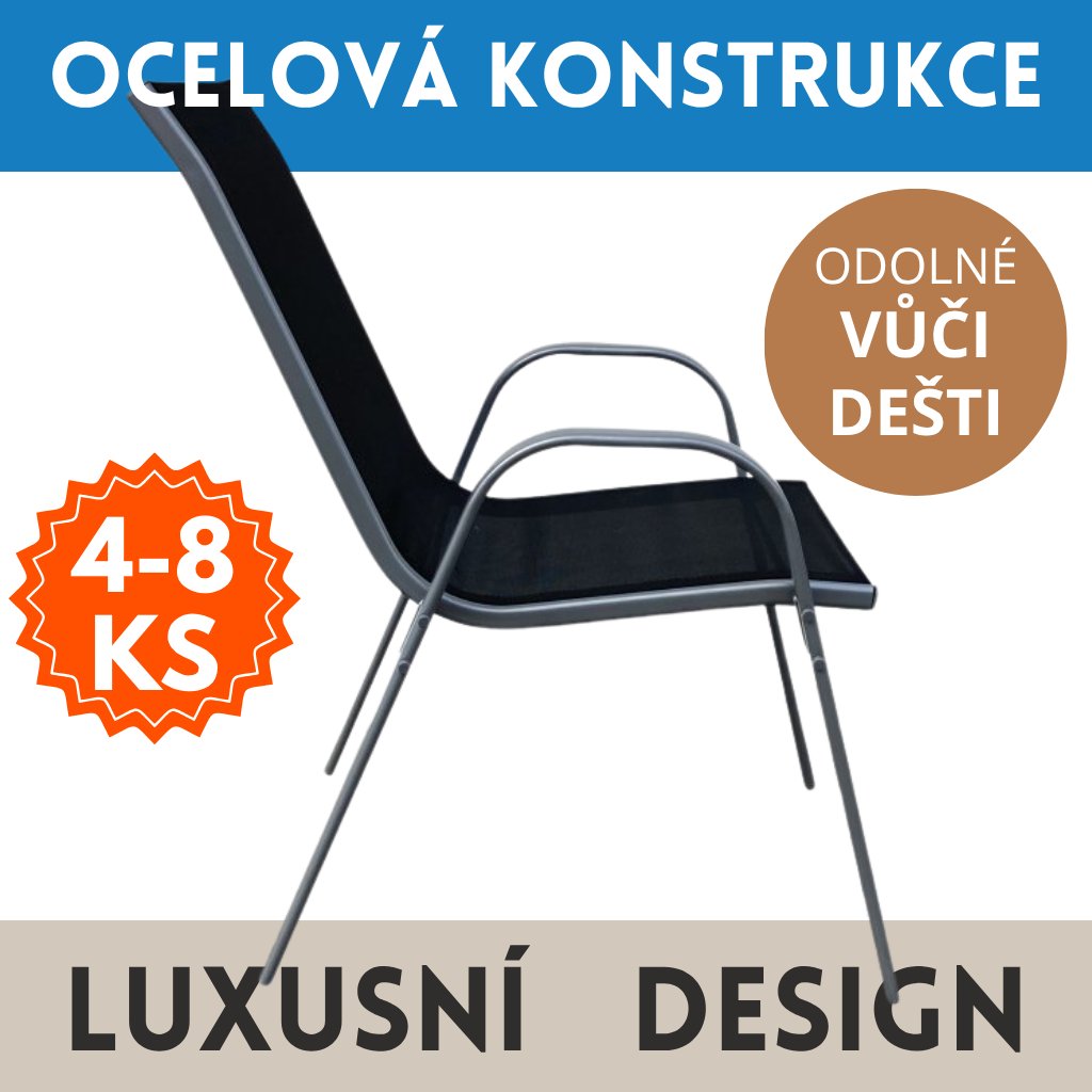 Velmi praktická zahradní židle s ocelovou konstrukcí.