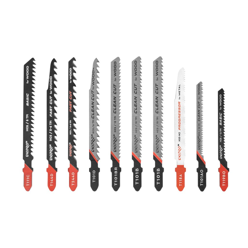 Profesionální sada pilových listů Dnipro-M, 10 kusů je ideálním univerzálním řešením pro práci se dřevem, materiály na bázi dřeva (překližka, dřevotříska, dřevovláknité desky), kovem, polymerními materiály a PVC.