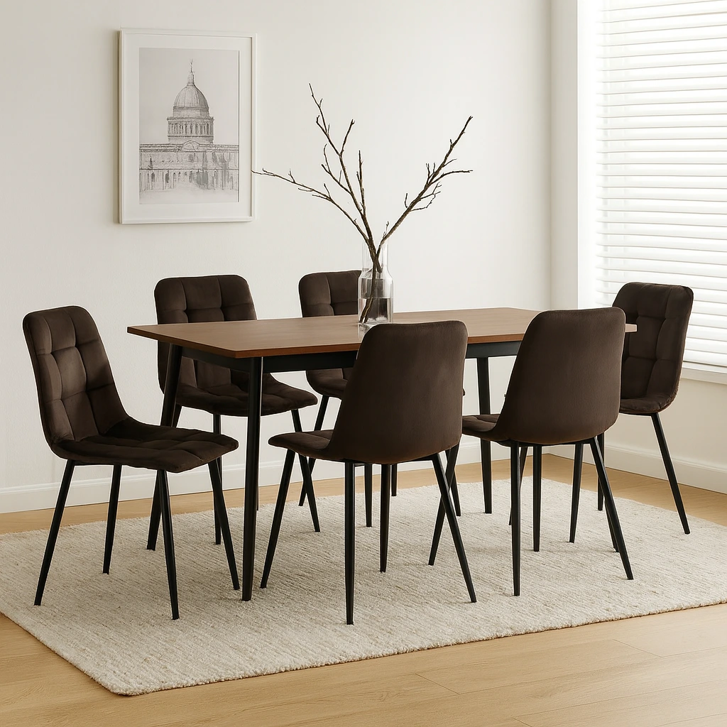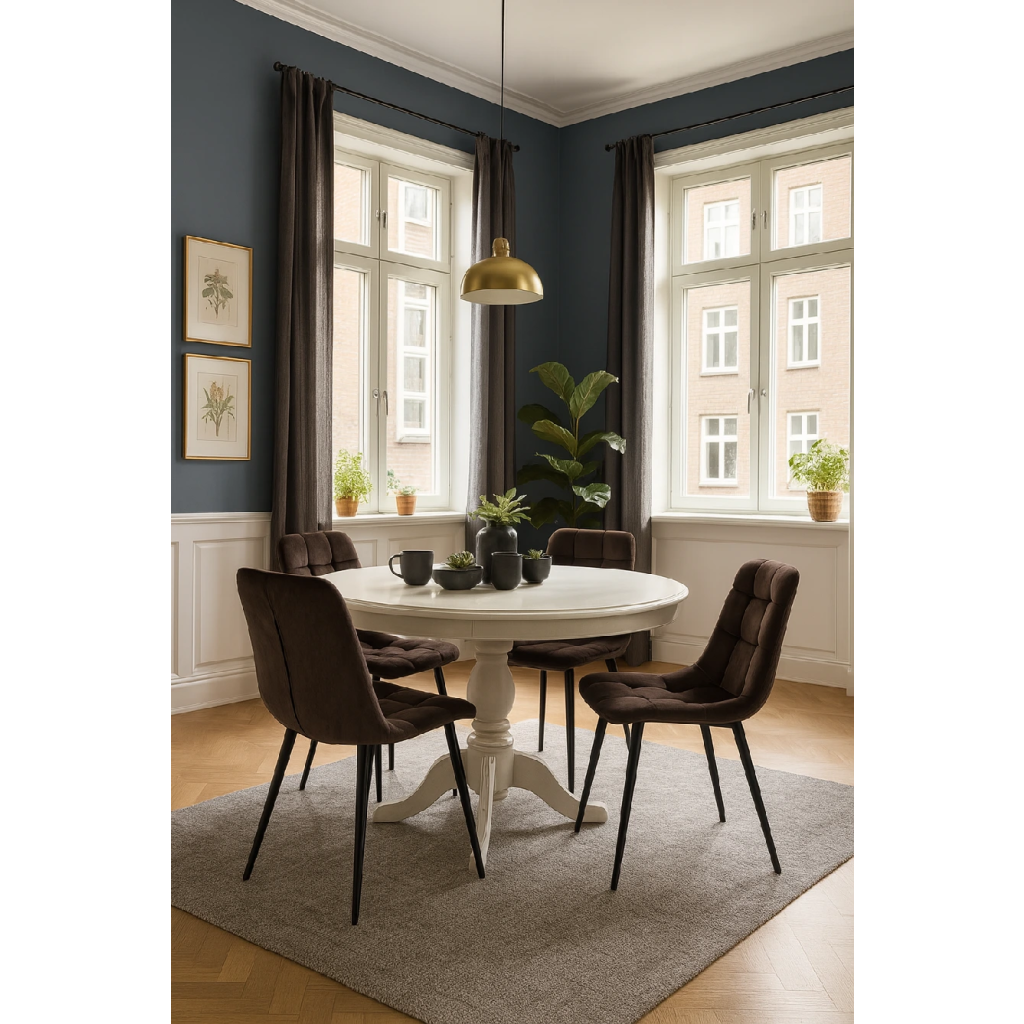 Židle je vhodná do jídelny, obývacího pokoje i pracovny. Spojuje komfort, styl a odolnost.