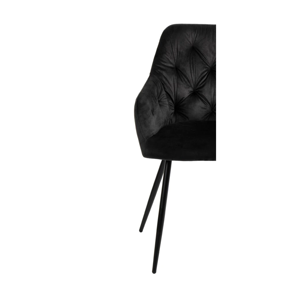 Elegantní židle SIENA s područkami přináší moderní design. O vaše pohodlí se postará komfortní čalounění v černém sametu s dekorativním prošíváním. Pevné kovové nohy v černém provedení dodají židli patřičnou stabilitu.