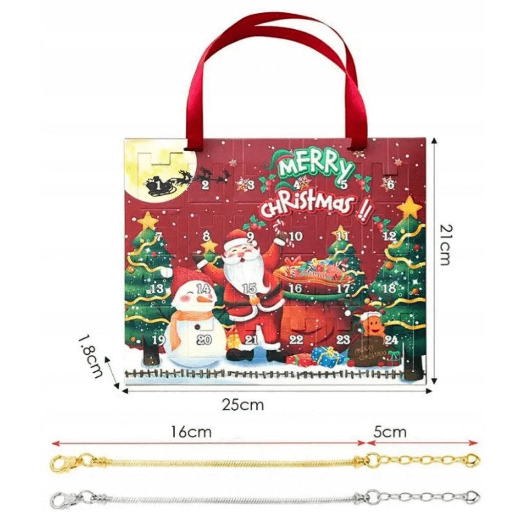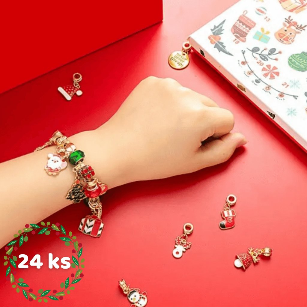 Adventný kalendár so šperkami a náramkami – 24 prekvapení s príveskami, zlatý a strieborný náramok