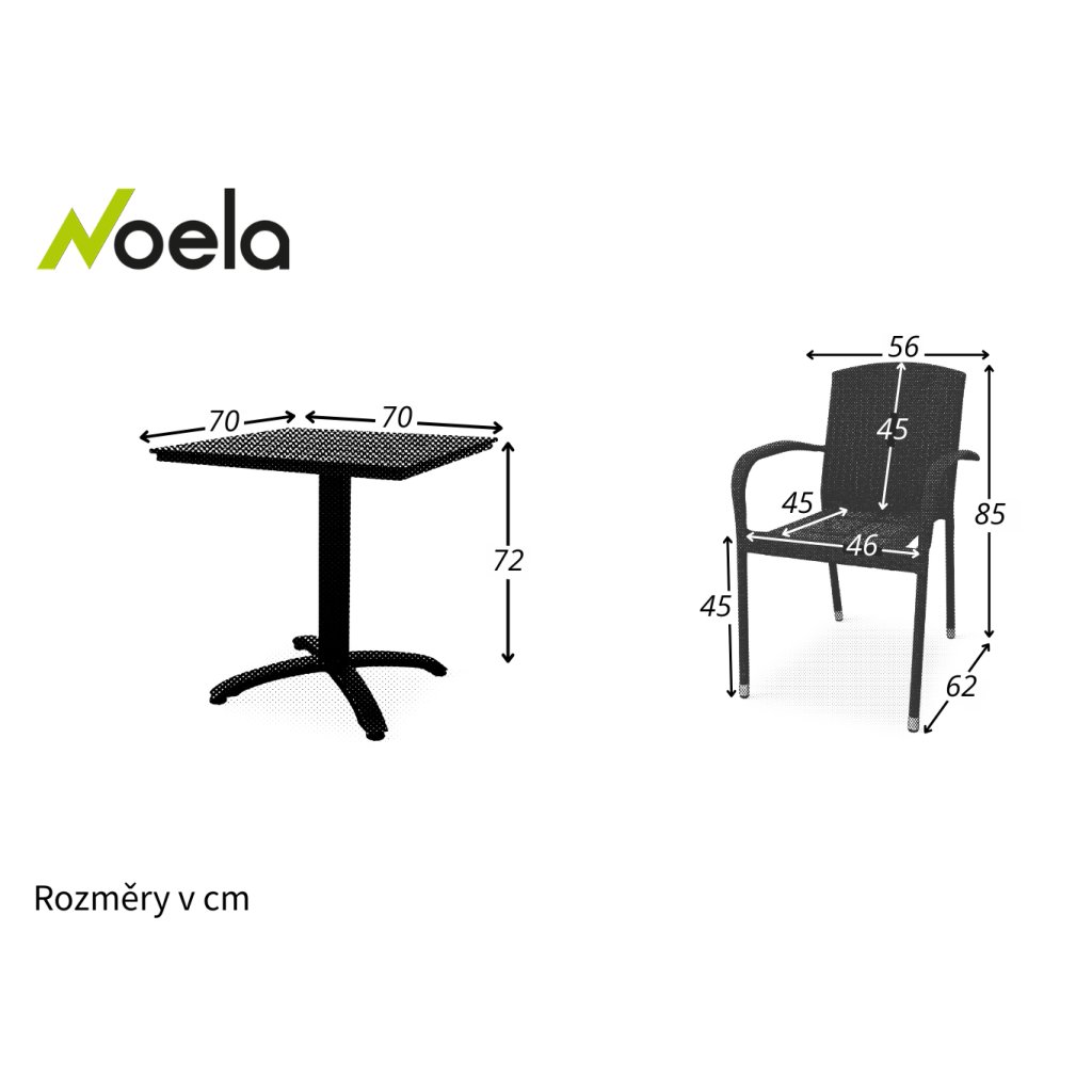 Set tvoria Neúdržbový kovový stôl Ristorante 70x70cm a 2 Záhradné ratanové stoličky Roma.