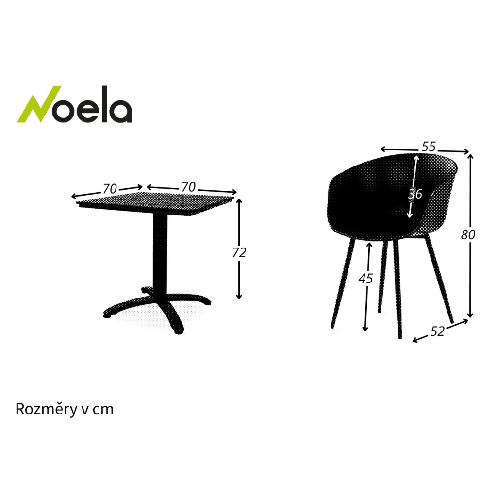 Rozmery stola: 70 cm x 70 cm x 72 cm (Hĺbka x Šírka x Výška)