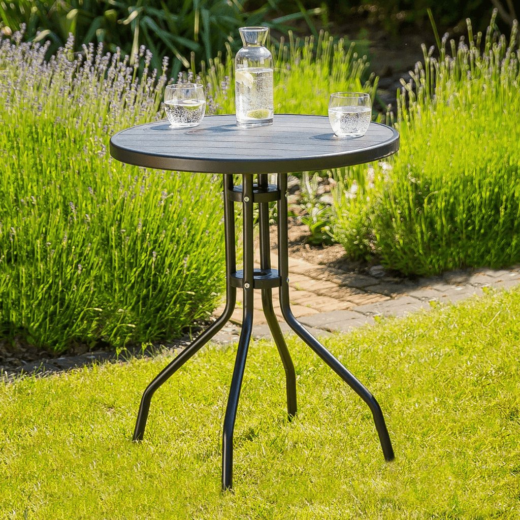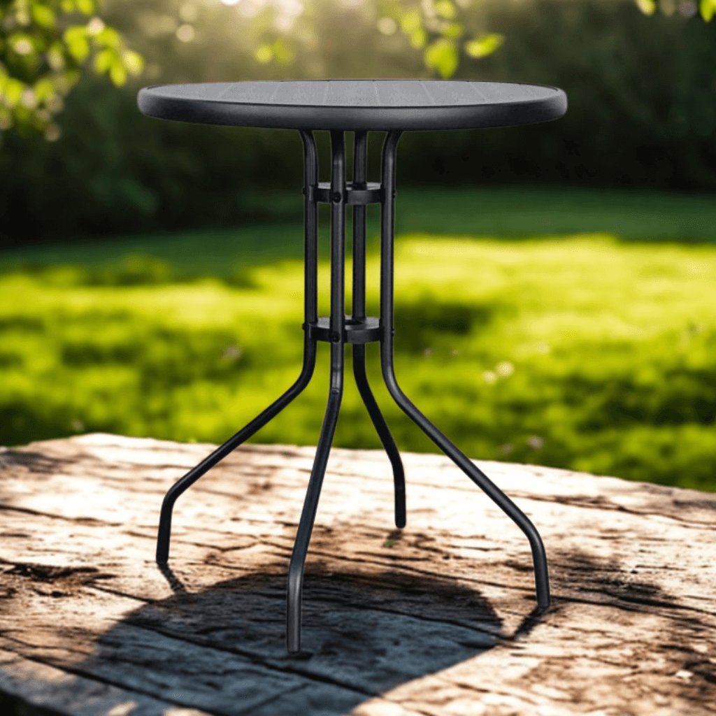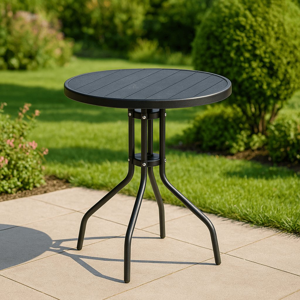 Tento elegantný okrúhly stôl je ideálnou voľbou pre akékoľvek vonkajšie aj vnútorné priestory – či už na balkón, terasu alebo do záhrady.