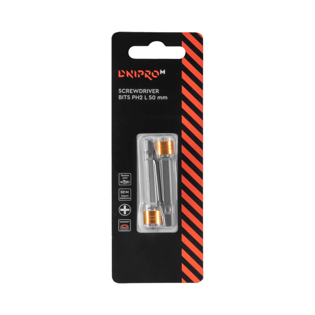 Bit PH 2 50 mm s magnetickým držákom 2 ks. Dnipro-M
