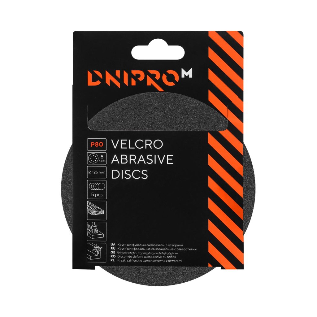 Brúsny kotúč na suchý zips P80 8 dr. 125 22,2 mm 5 ks. Dnipro-M