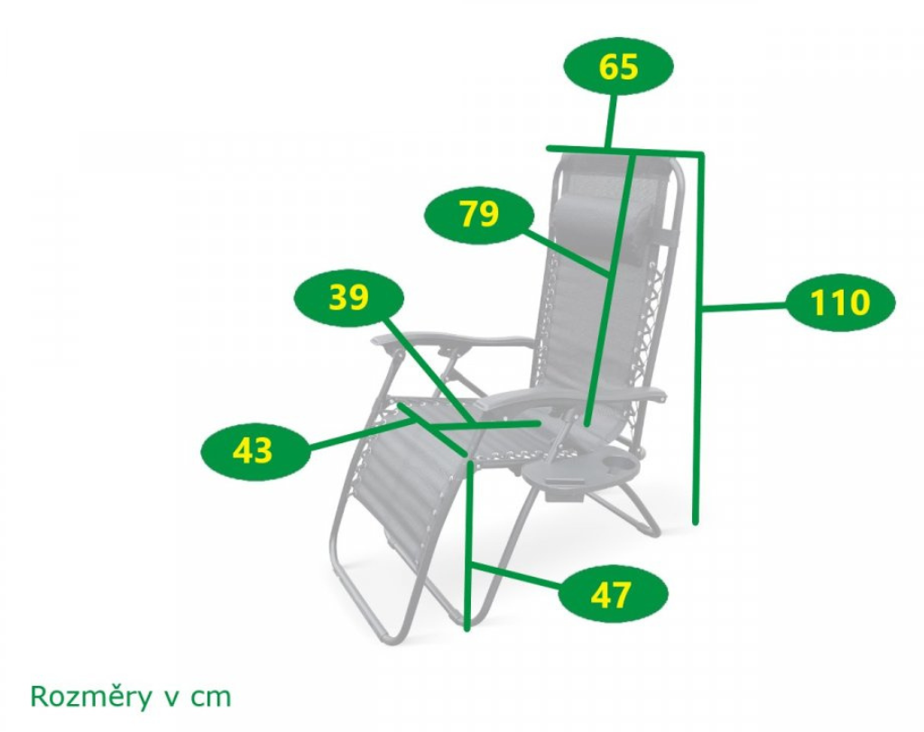 - Rozmery kresla: 175 x 65 x 110 cm ( Dĺžka x Šírka x Výška )