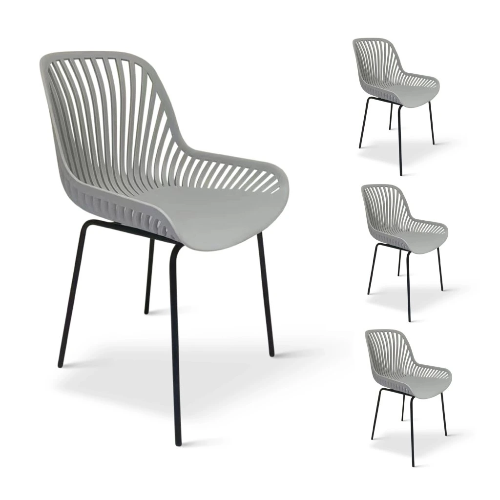 Dizajnové stoličky GABY v sivej farbe vhodné aj na použitie vonku na záhrade. Stoličku tvorí sedadlo a operadlo z polypropylénu na 4 pevných nohách z ocele. Zvolený vzdušný dizajn operadla oceníte najmä v letných mesiacoch. Stolička odoláva poveternostným vplyvom a nájde tak svoje využitie v interiéri aj exteriéri. Použité materiály nevyžadujú takmer žiadnu údržbu.