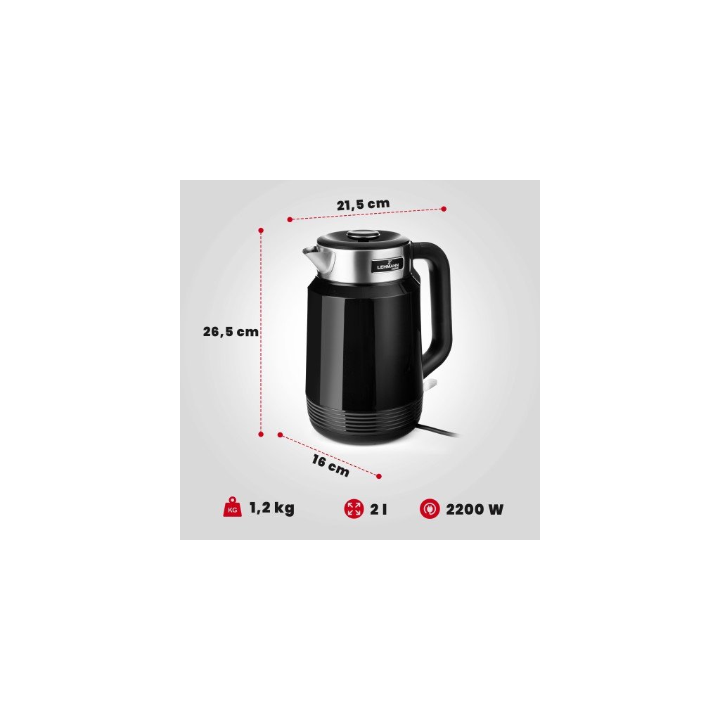 - Veľký objem 2 l + výkon 2200 W – rýchly ohrev počas niekoľkých minút aj pre viac šálok naraz.