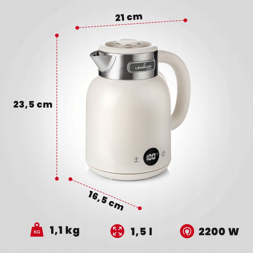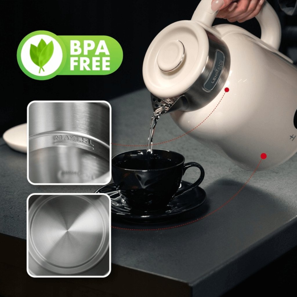 - Objem 1,5 litru – zvládne pripraviť viac šálok čaju alebo kávy naraz. Skvelý pomocník pri rodinných raňajkách či stretnutiach s priateľmi.
