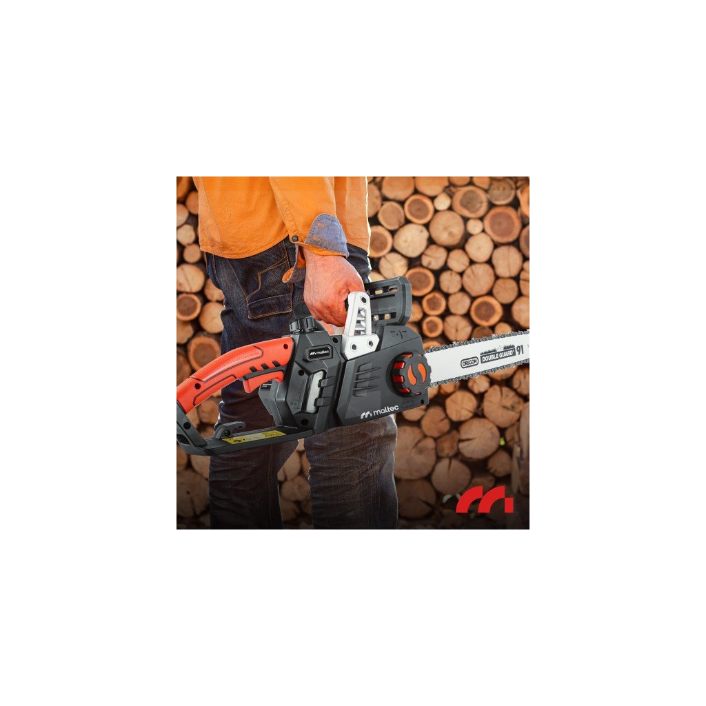 Elektrická reťazová píla s výkonným motorom, určená na rezanie palivového dreva a na bežné práce nielen na záhrade.
