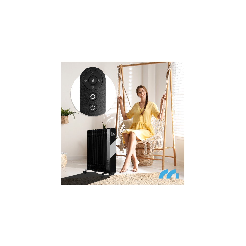 OilHeat Smart 2500 W – olejový radiátor s diaľkovým ovládaním, pripojením na Wi-Fi, rodičovskou ochranou a termostatom, čierny