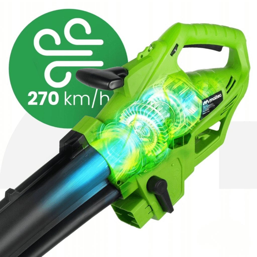 Elektrický záhradný fúkací stroj na lístie, vysávač a drvič v jednom.