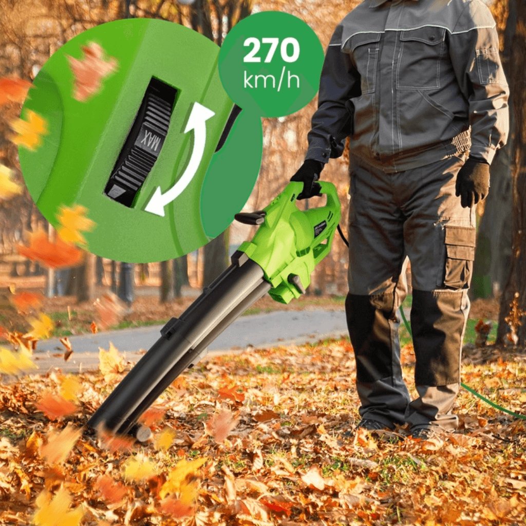 LEAFOX 3v1 záhradný fukár s funkciou vysávania a drvenia – so zberným vakom 40 l, popruhom cez rameno, vodiacimi kolieskami