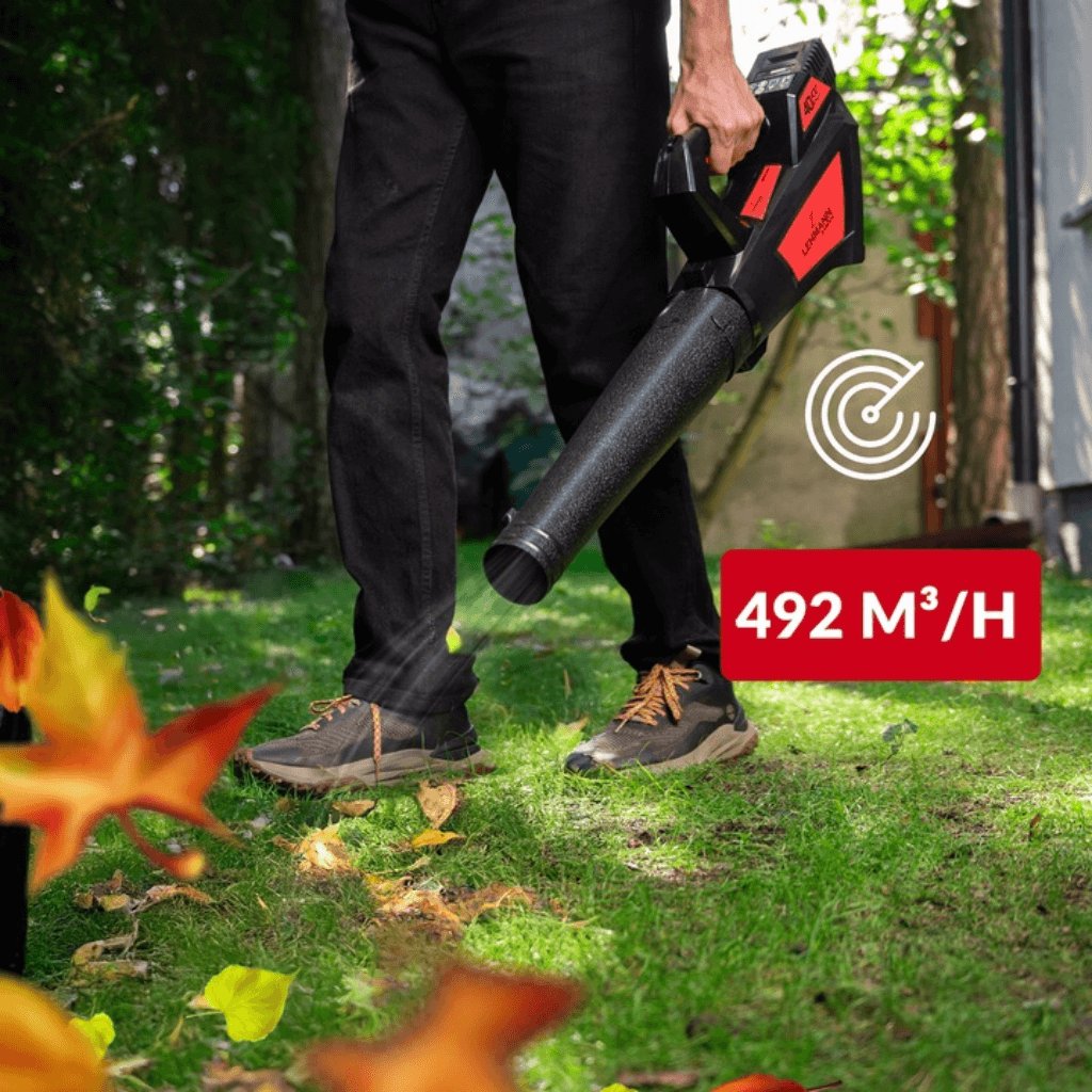 - Výkon 492 m³/h a 24 000 ot/min– umožňujú získať silný prúd vzduchu, ktorý si poradí s mokrými lístami, pieskom alebo trávou. Ideálny do záhrady a na príjazdovú cestu.