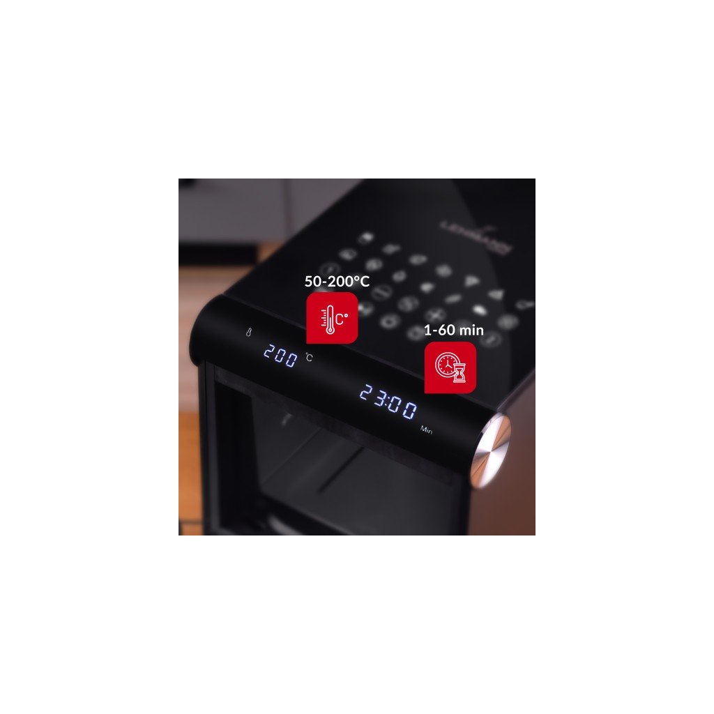 - Regulácia teploty 50–200 °C a časovač 60 minút umožňujú prispôsobiť pečenie pokrmom, čo umožňuje plnú kontrolu a chráni jedlo pred pripálením.