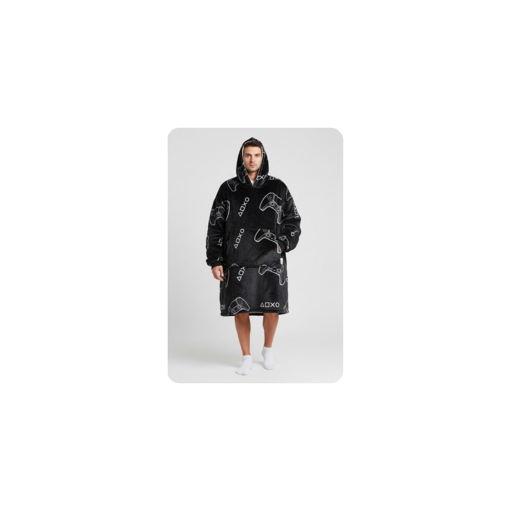 HUGNEST Premium Hoodie XXL – černá mikina s motivem playstation, s ovečkovou podšívkou a maximálním komfortem