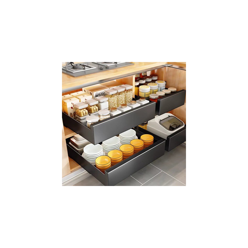 KitchenSlide organizér 40 cm – kovový výsuvný úložný šuplík na koření, černý