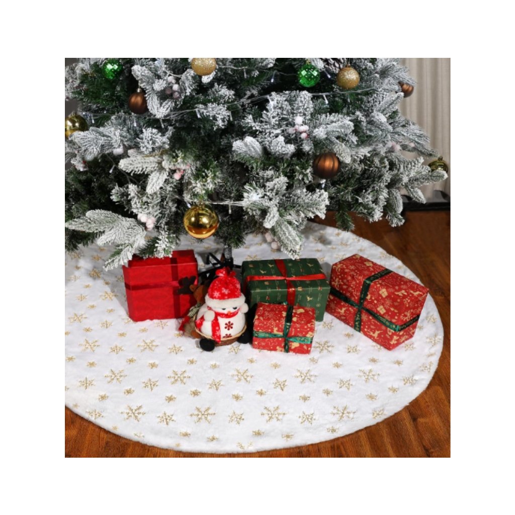 Kobereček pod stromek WHITEY 116 cm – kožíškový vánoční koberec s hvězdami a zipovým zapínáním, bílá a zlatá