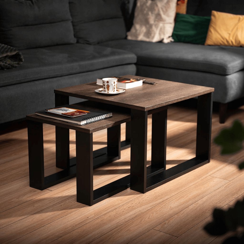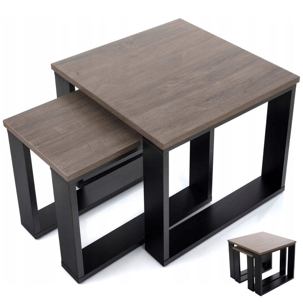 KONFERENČNÍ STOLEK LAVICE SADA STOLKŮ LOFT EXCLUSIVE DUB HNĚDÝ 2V1 XXL