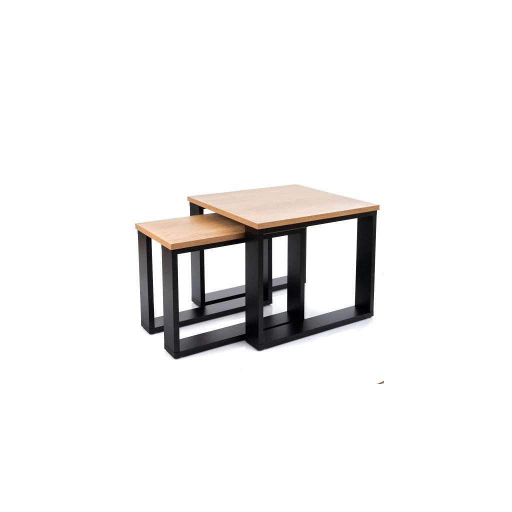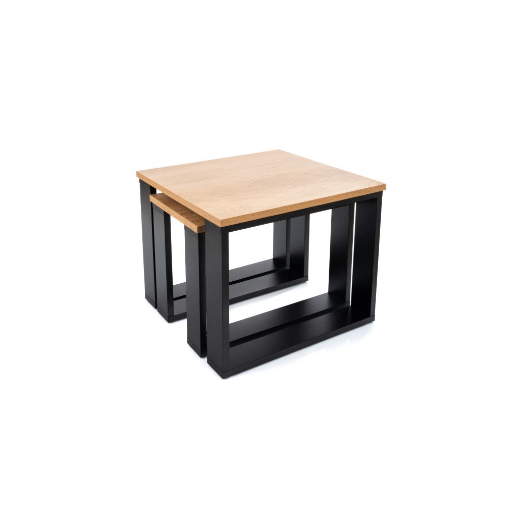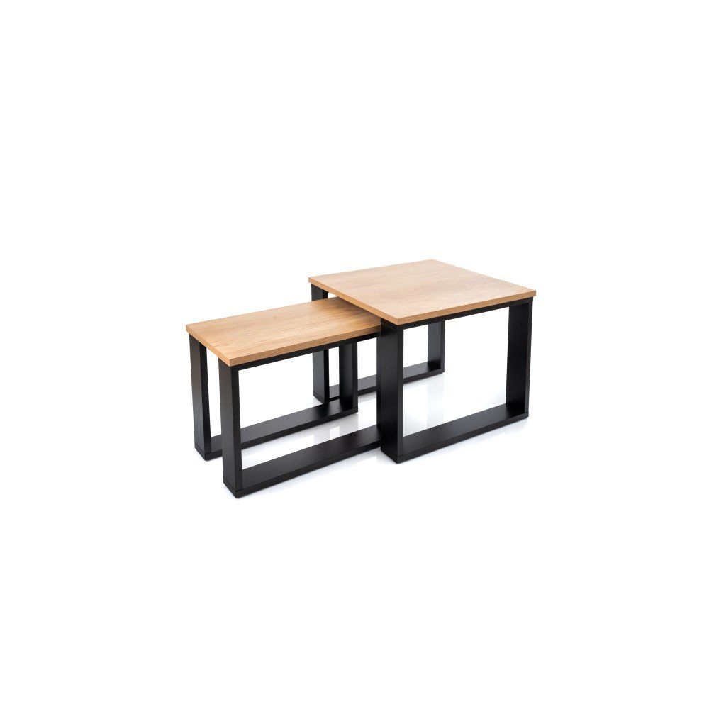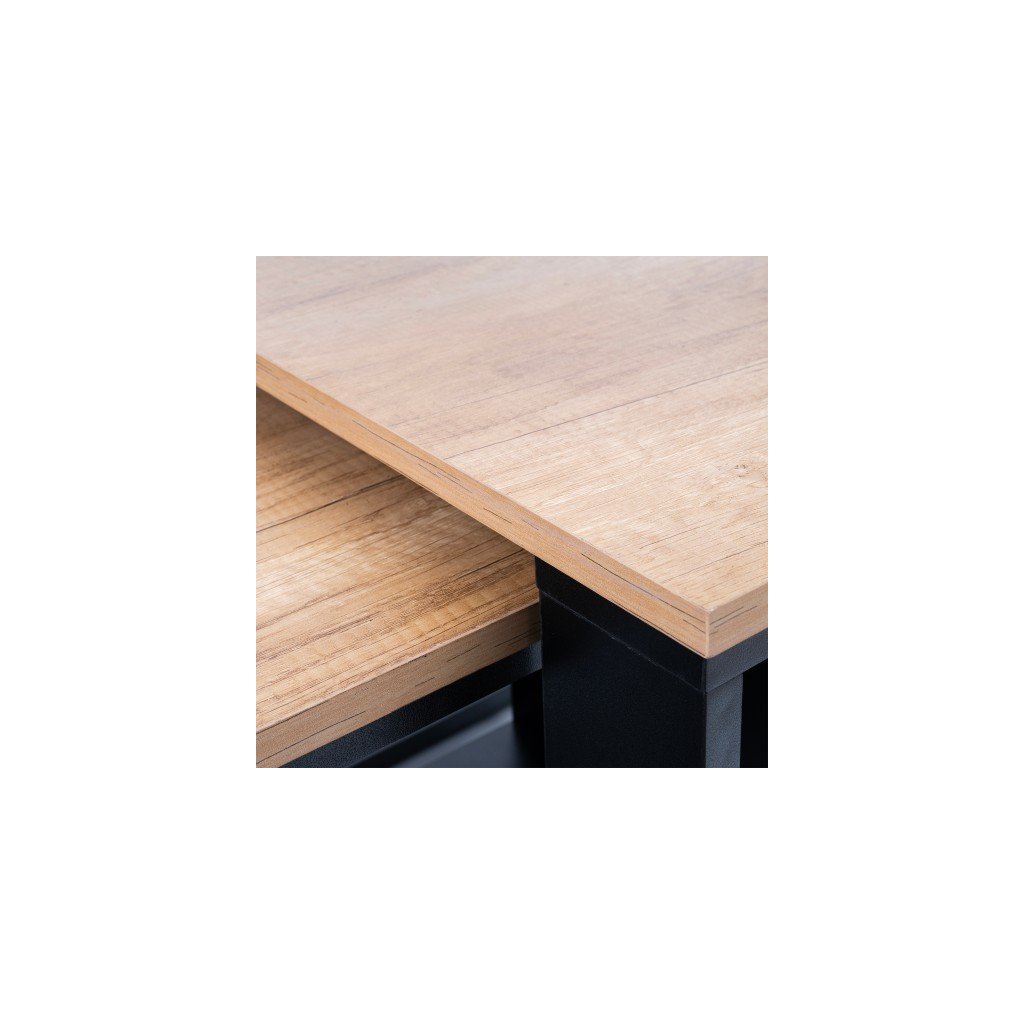 LoftWood Duo – set kávových stolků v industriálním stylu 2v1, dub zlatý