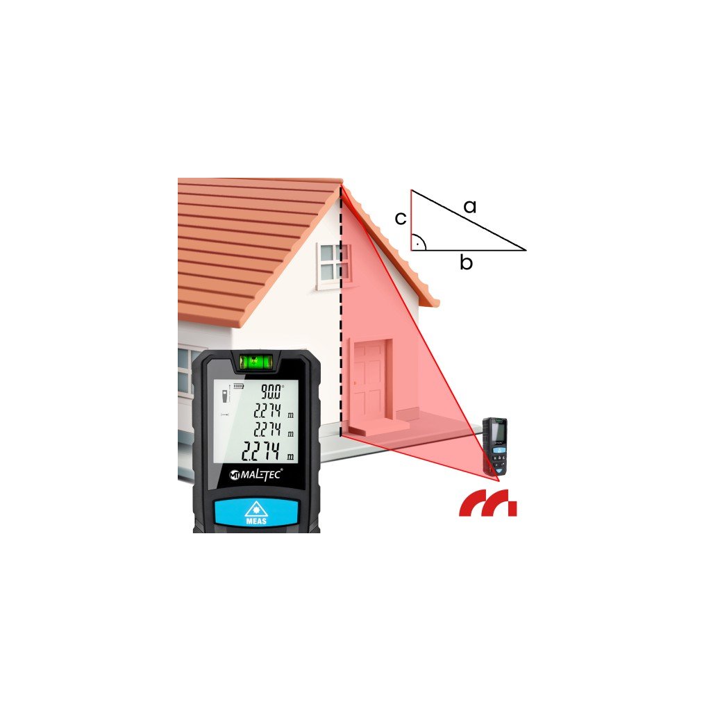 Funkcia Pythagoras, dostupná vo 2-bodovej a 3-bodovej verzii, umožňuje presný výpočet rozmerov, čo eliminuje potrebu používať rebríky alebo iné nástroje.