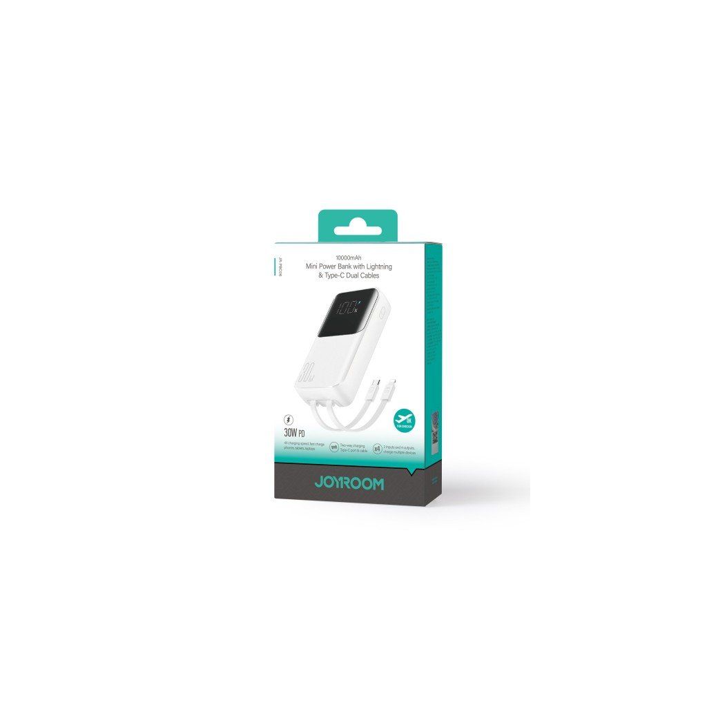 Mini powerbanka 10000 mAh s vestavěnými kabely JR-PBC06 30W bílá