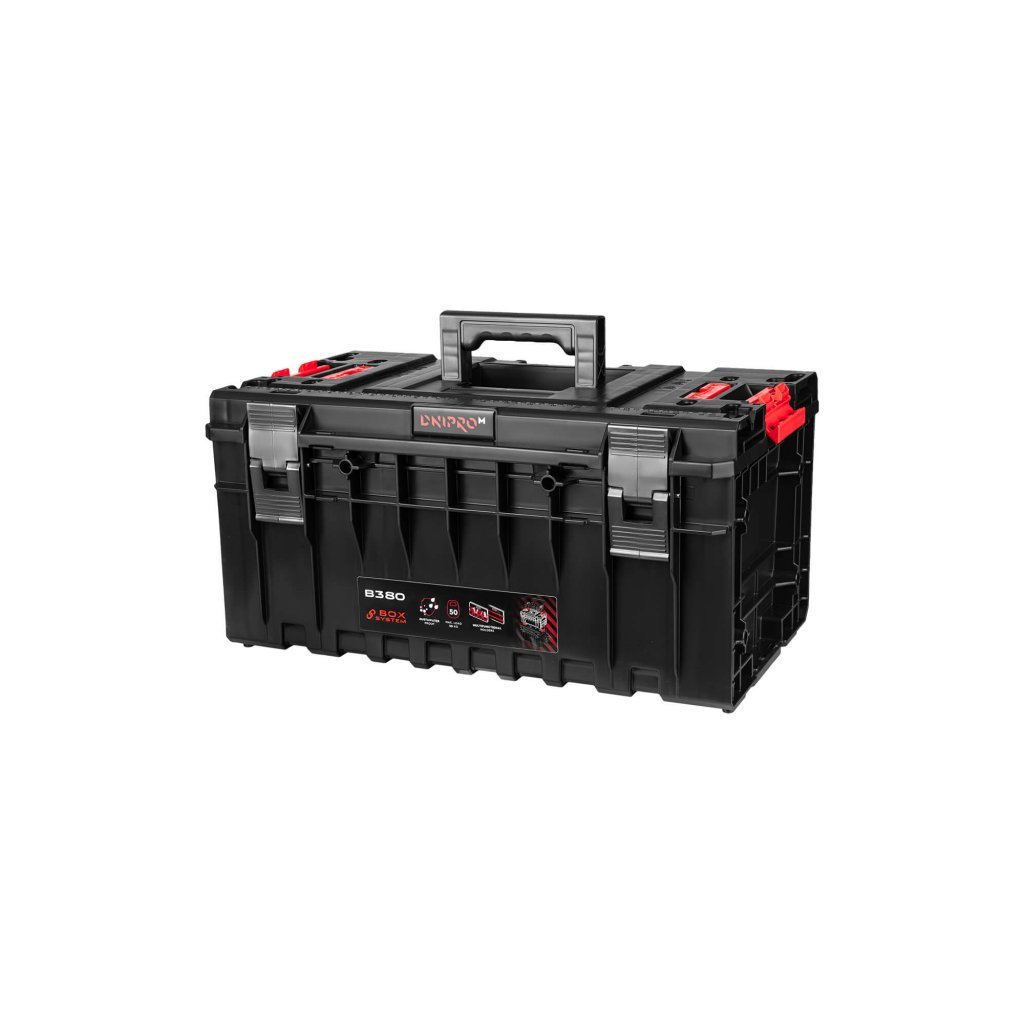 • Krabica má 2 nastaviteľné priehradky. Jedna s elastickými popruhmi, druhá je viacpriestorová s rôznymi držadlami na ručné náradie, čo uľahčuje udržiavanie poriadku vo vnútri.