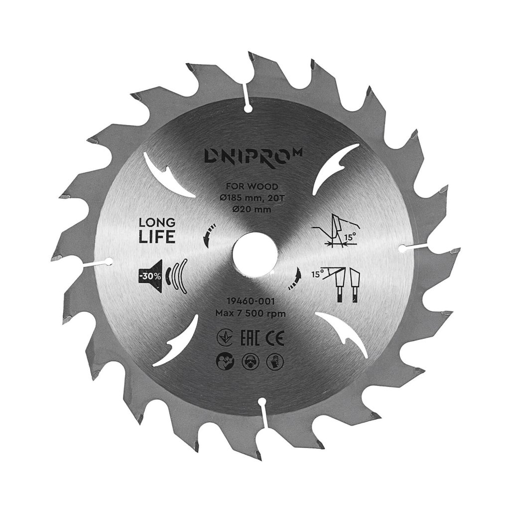 Pílový kotouč Dnipro-M, 185 20T, 20/16 je určený na prácu so stromami a drevotrieskovými doskami.
