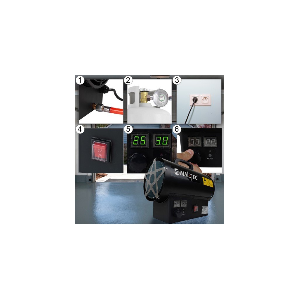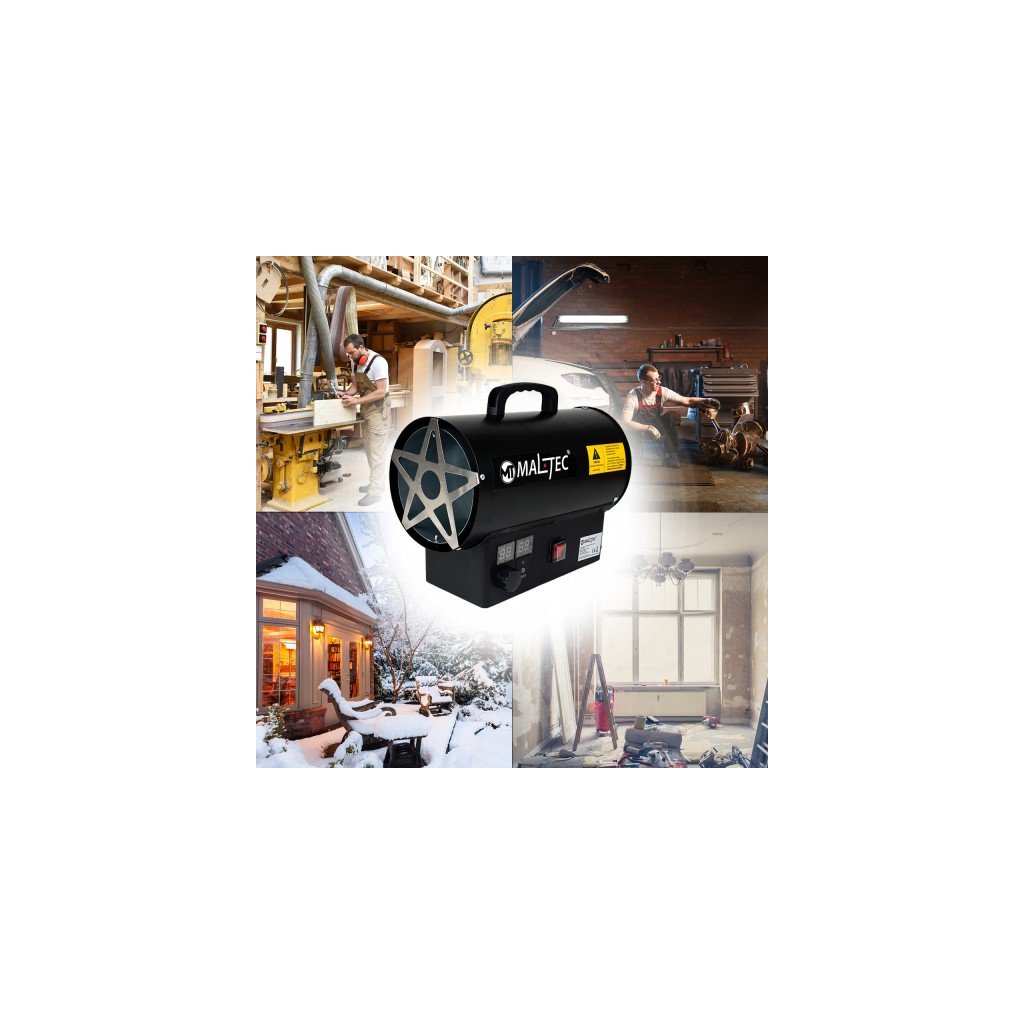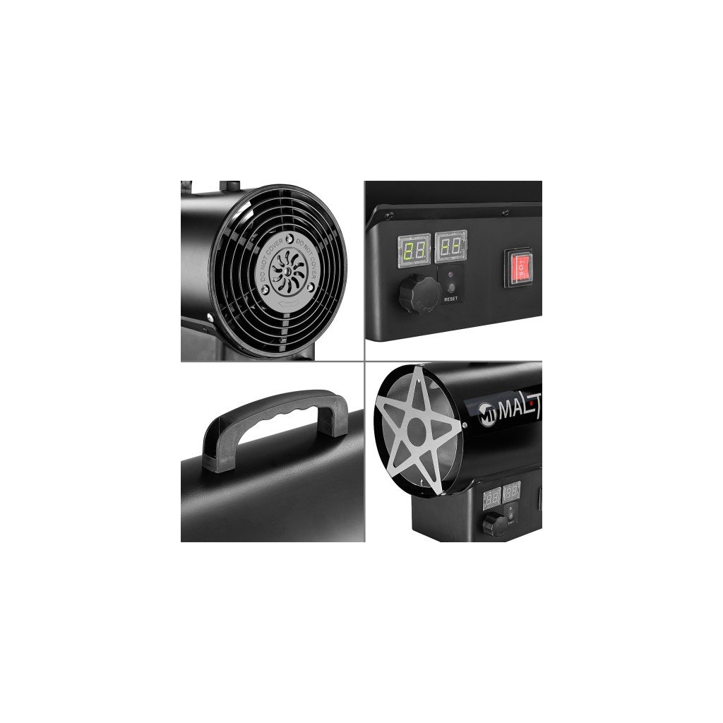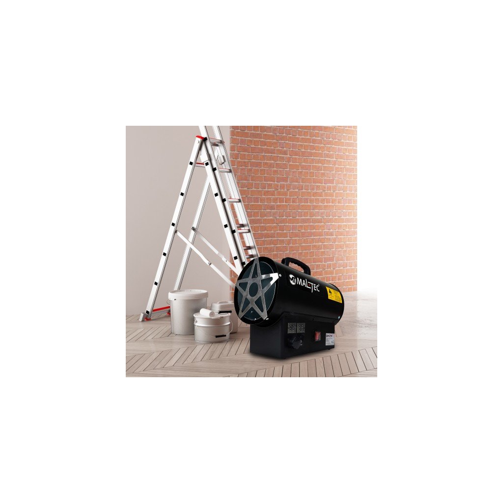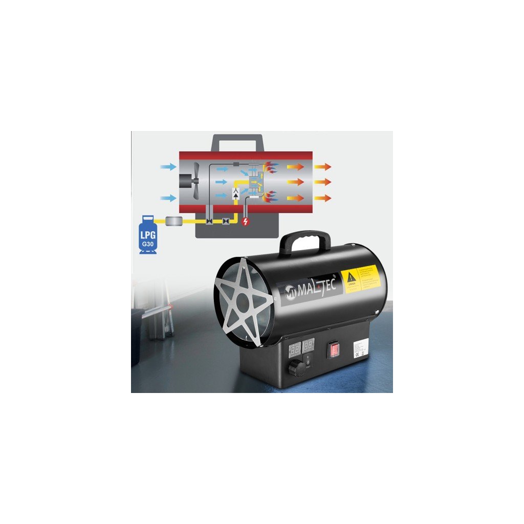 PLYNOVÝ OHŘÍVAČ FÚKAČ S TERMOSTATEM NA LÁHEV HADICE REDUKTOR LCD 25kW