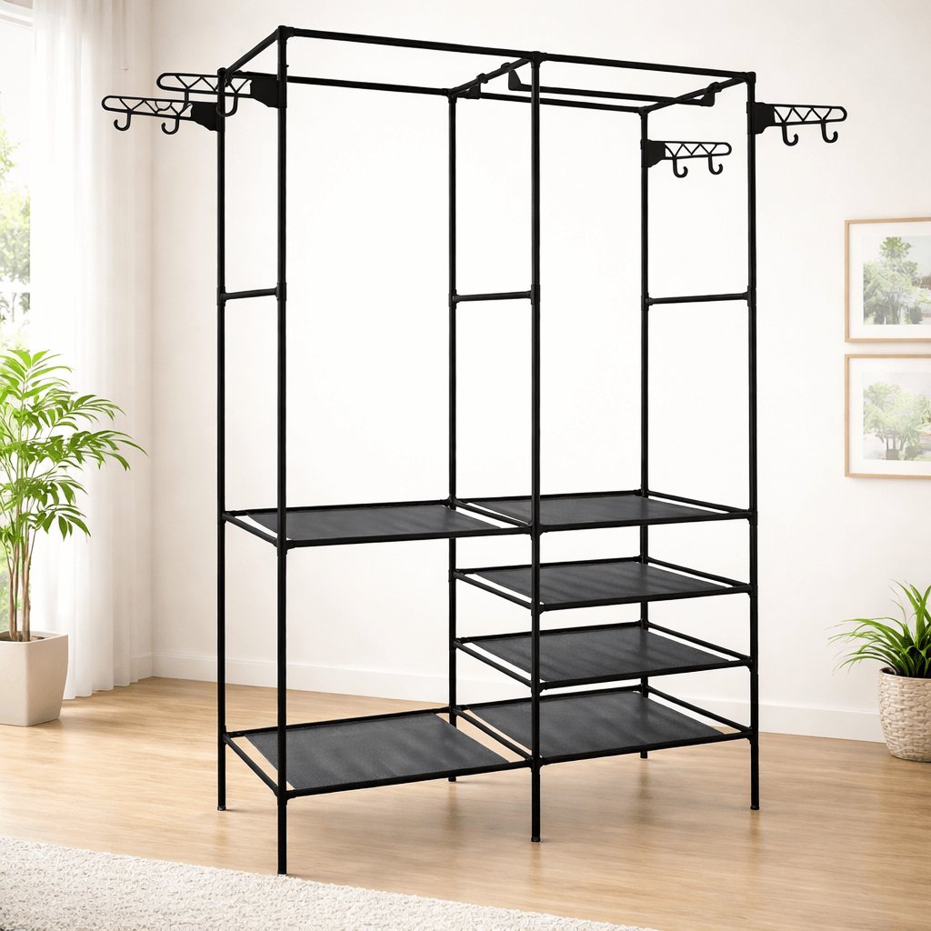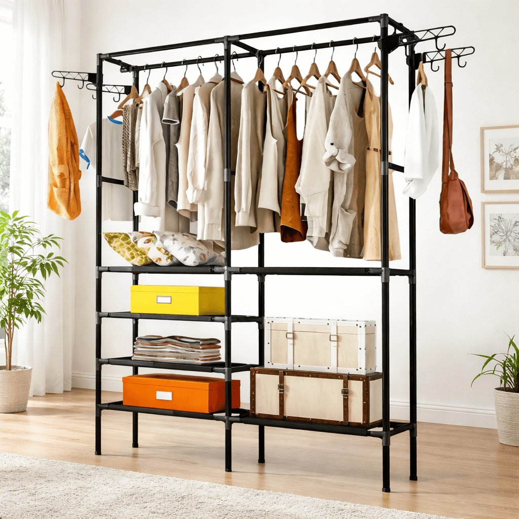 Stojan jsem kupovala do dětského pokoje - překvapilo mne kolik se toho tam vejde, v tomto ohledu fakt spokojenost. Konstrukce je lehká i lehce přemístitelná, což kor v dětském pokoji kde se furt něco přemisťuje, oceníte. 5*