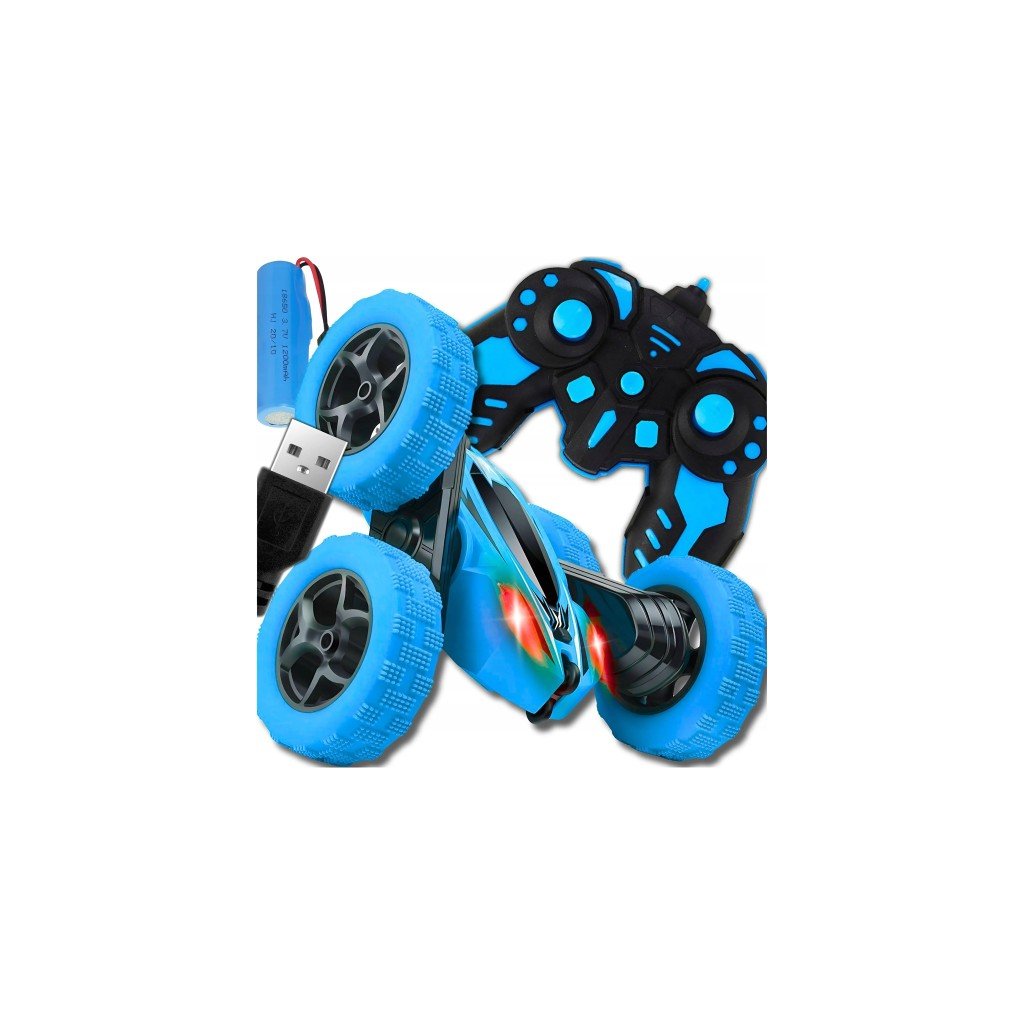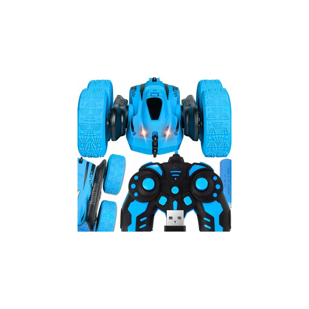 RC auto Twister – kaskadérské auto 360°, LED světla, dálkové ovládání, USB nabíjení, modrá barva