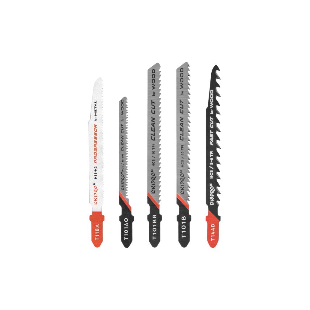 Uniwersalny zestaw ostrzy do pił Dnipro-M (5 sztuk) jest idealnym kompletnym rozwiązaniem do pracy z drewnem, materiałami drewnopochodnymi (sklejka, płyta wiórowa, płyty włókniste), metalem i PVC.