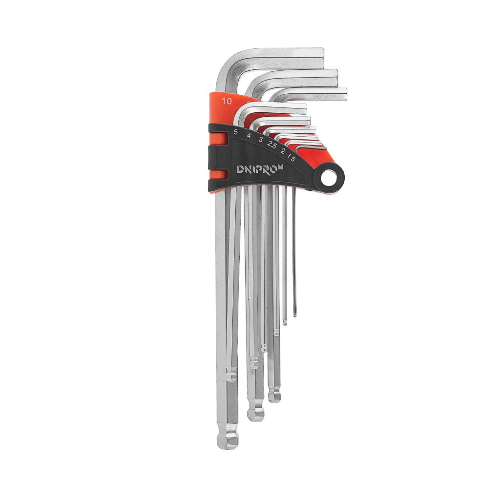 Sada šesťhranných kľúčov predĺžená s guľkou 9 ks Dnipro-M