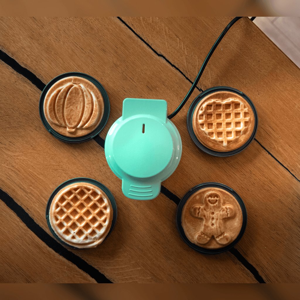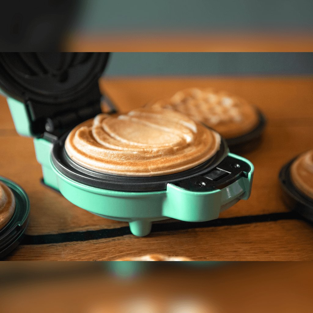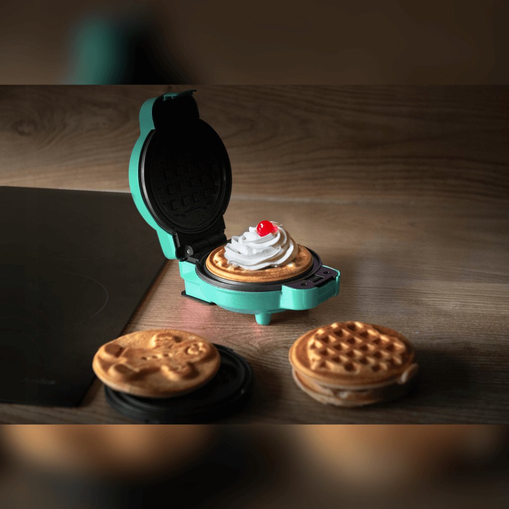 Seznamte se s mini vaflovačem v pastelové mátové barvě, který promění vaše snídaně a dezerty v čistou zábavu!