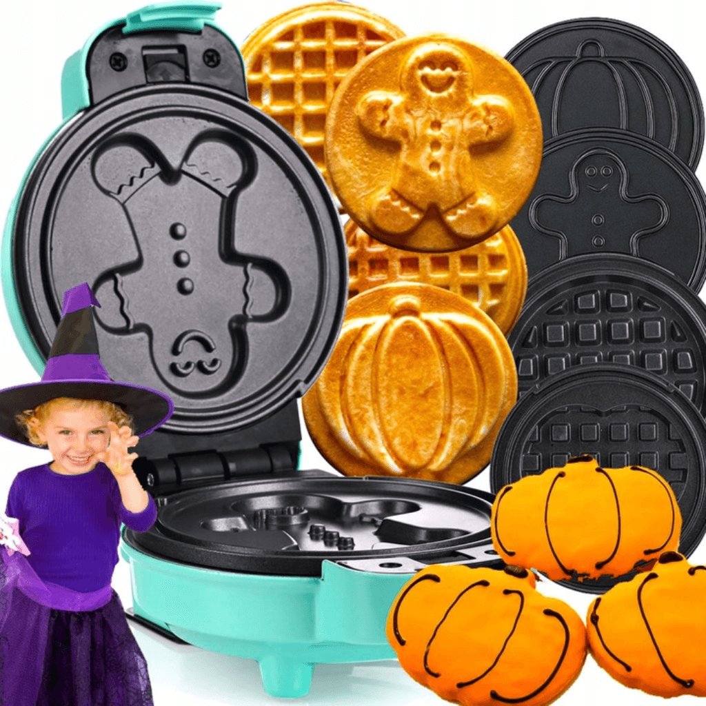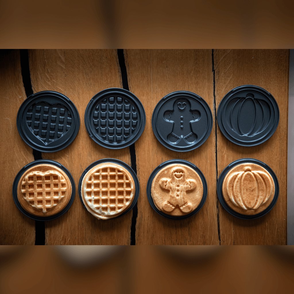 Díky čtyřem vyměnitelným deskám (dýně, perník, srdce, kruh) vykouzlíte vafle ideální pro každou příležitost – od narozeninových oslav až po vánoční překvapení.
