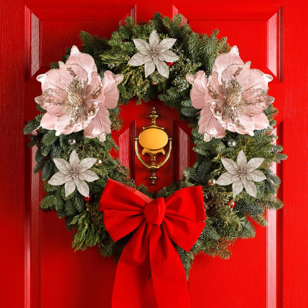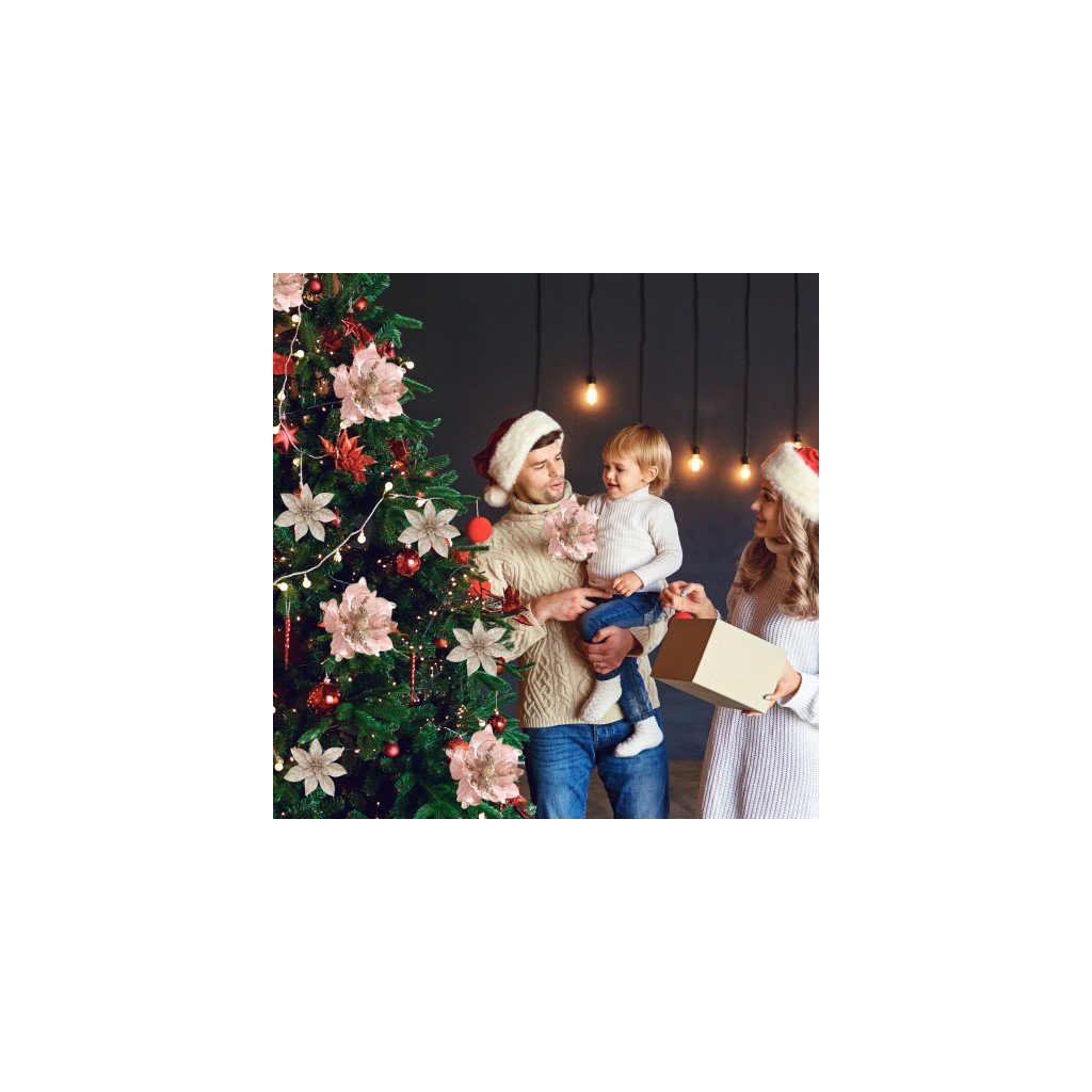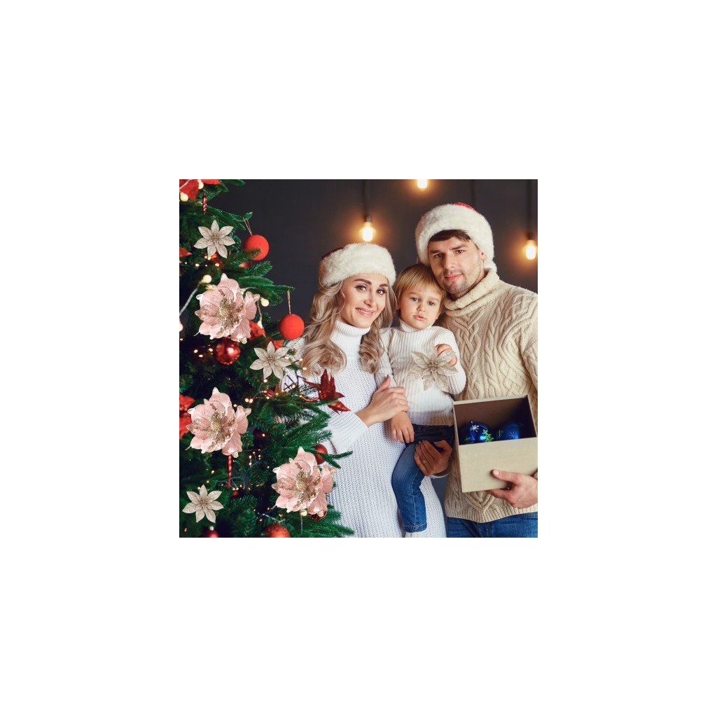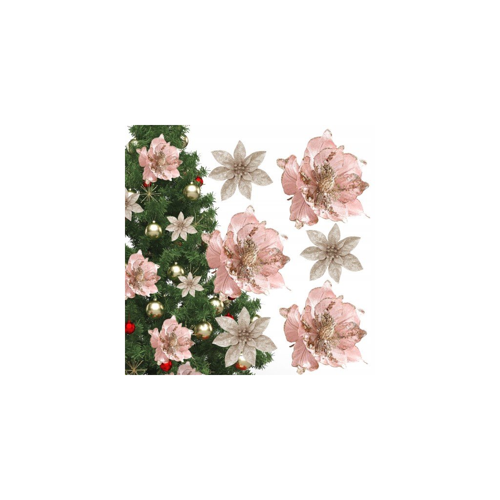 Vánoční ozdoby Betlémská hvězda 6 ks – třpytivé hvězdy na stromeček, šampaň & růžová