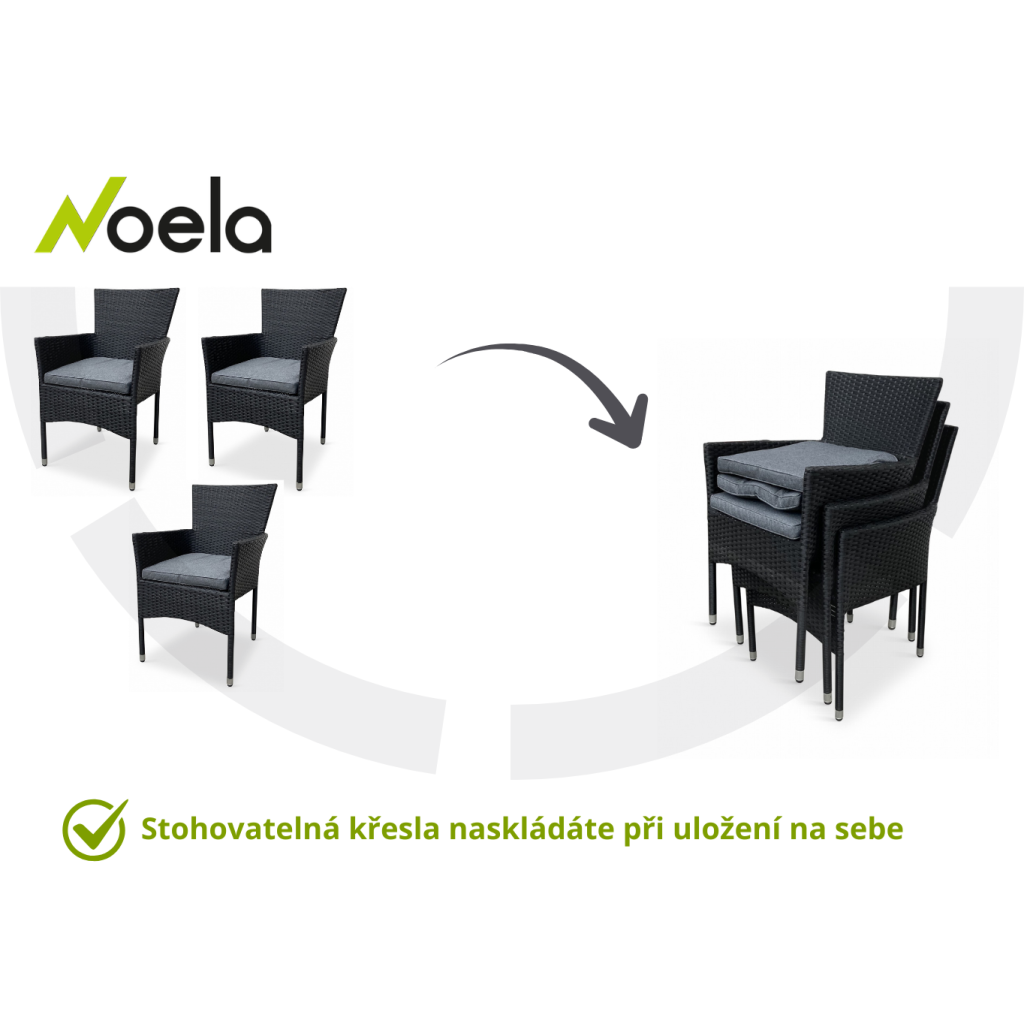 Jedálenský stôl dopĺňa pohodlné záhradné kreslo s vysoko kvalitnou oceľovou konštrukciou. Kreslo je stohovateľné, bezúdržbové a je dodávané vrátane podsedákov. Nosnosť je až 130 kg! Kreslo je vyrobené z umelého ratanu, ktorý je skvelou voľbou do českých poveternostných podmienok. Nevadí mu dážď, mráz, vietor ani slnko.